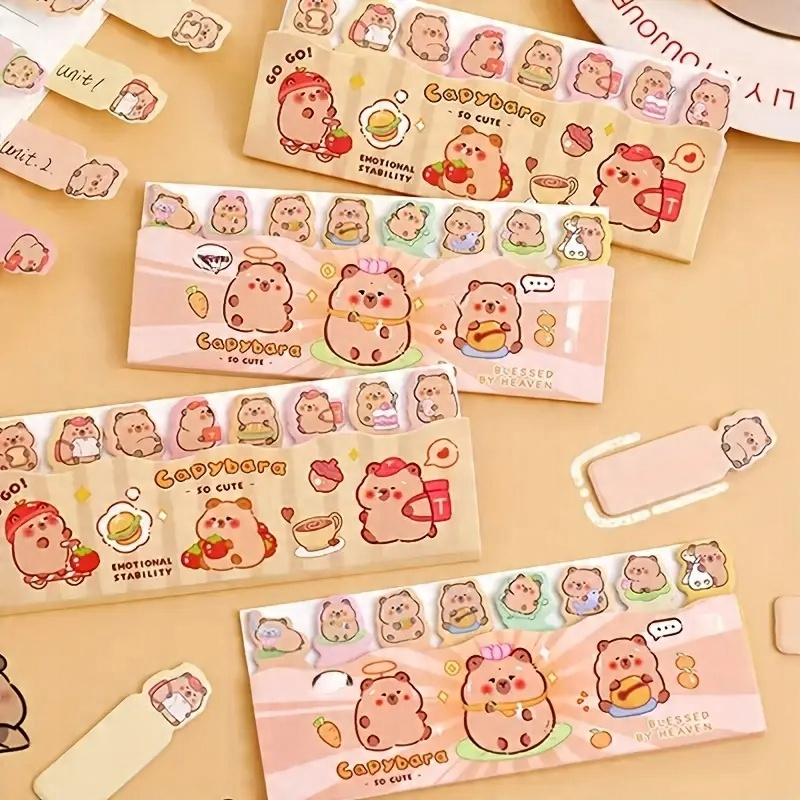 Самоадгезивные отборочные карты - маркеры. С изображением капибара. Восемь различных цветов и дизайнов карт, всего 120 карт для прилипания и описания фрагментов. Они очень красивые, красочные и эстетически сделанные. Упакован в полиэтиленовый пакет.