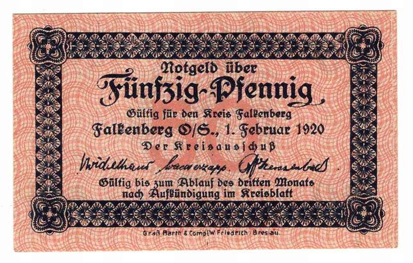 notgeld Niemodlin Falkenberg OS 50 Pf 1920 st.1