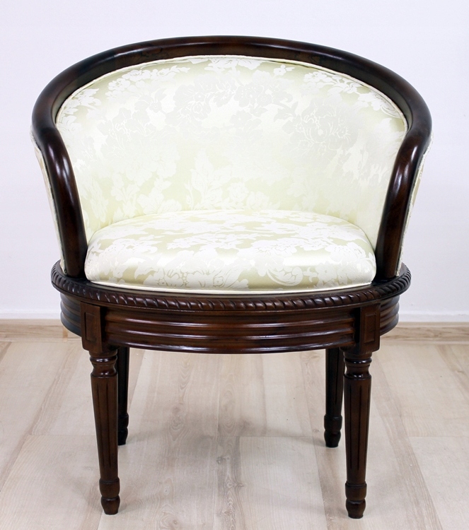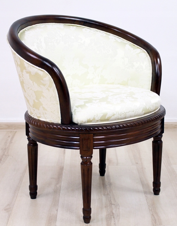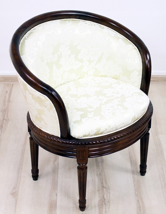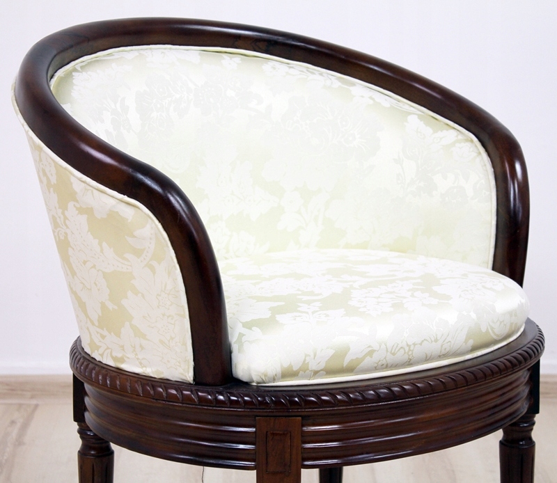 Представляем Вам кресло с красивой обивкой. Ажурная резьба придает этому креслу характер и делает его восхитительно красивым, а стилизованное мягкое сиденье представляет собой идеальное сочетание комфорта и эстетики.