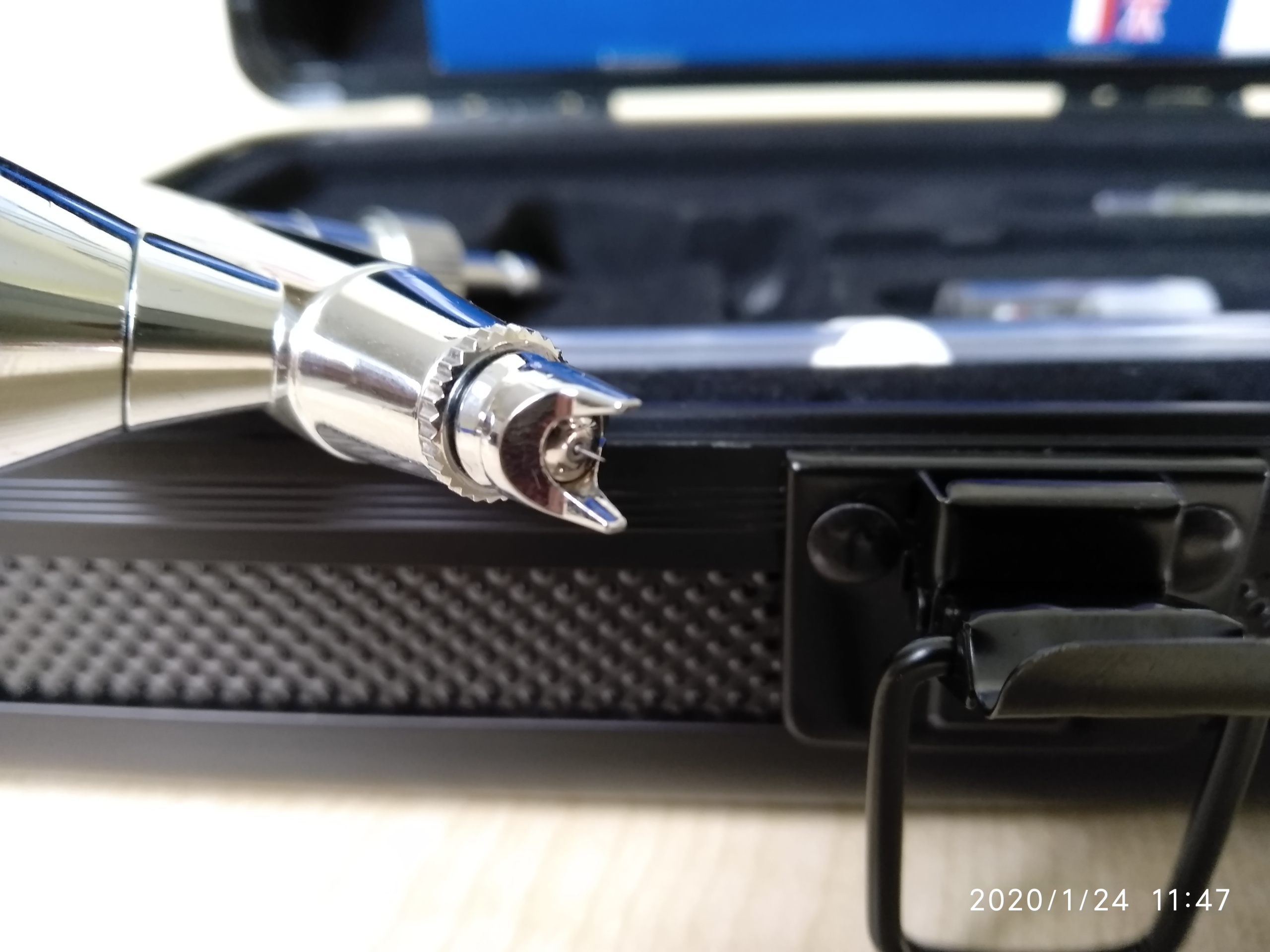 Аэрограф имеет большие малярные сопла без резьбы, что делает их замену намного быстрее и безопаснее, без риска повредить нежную нить.