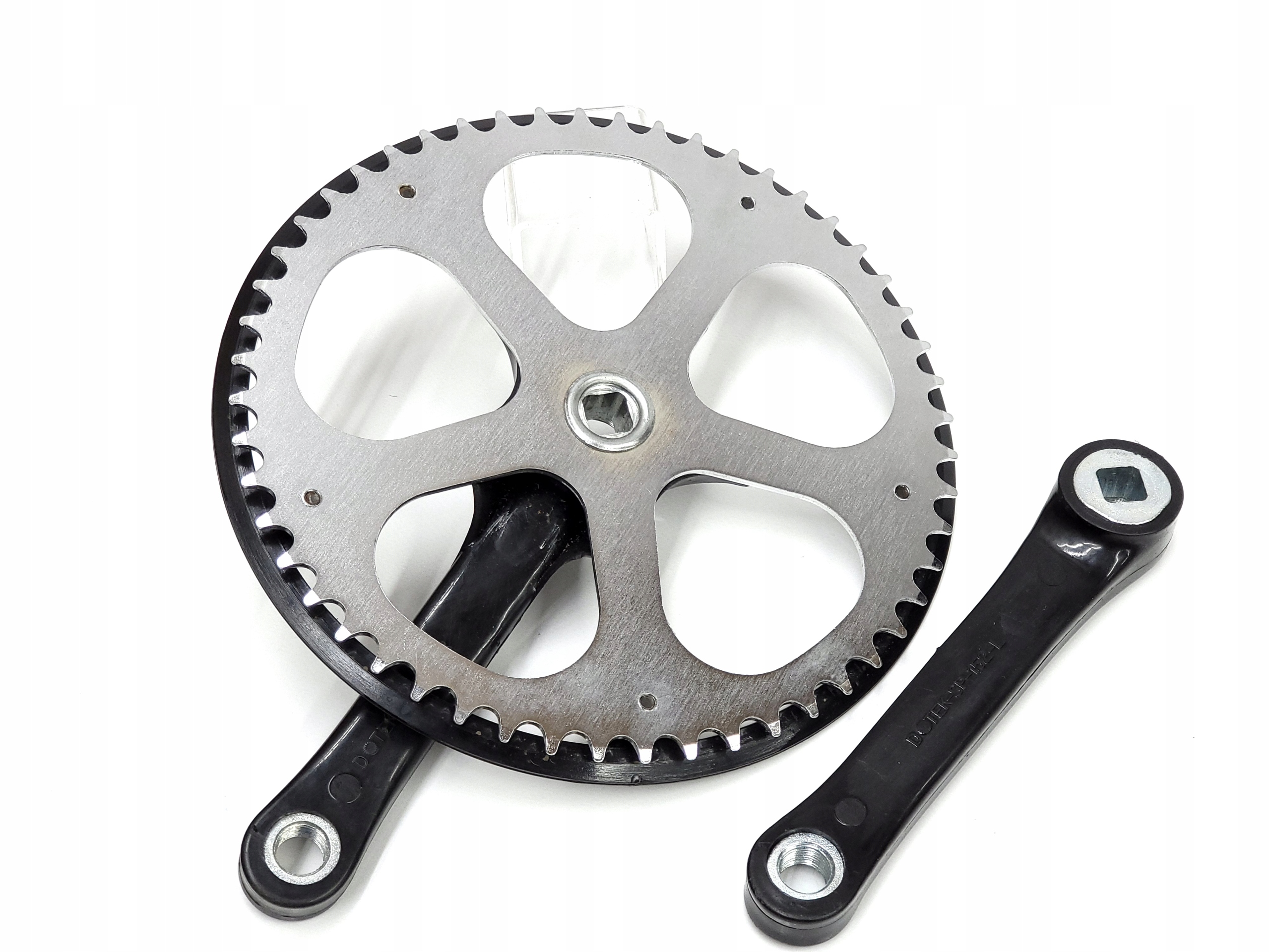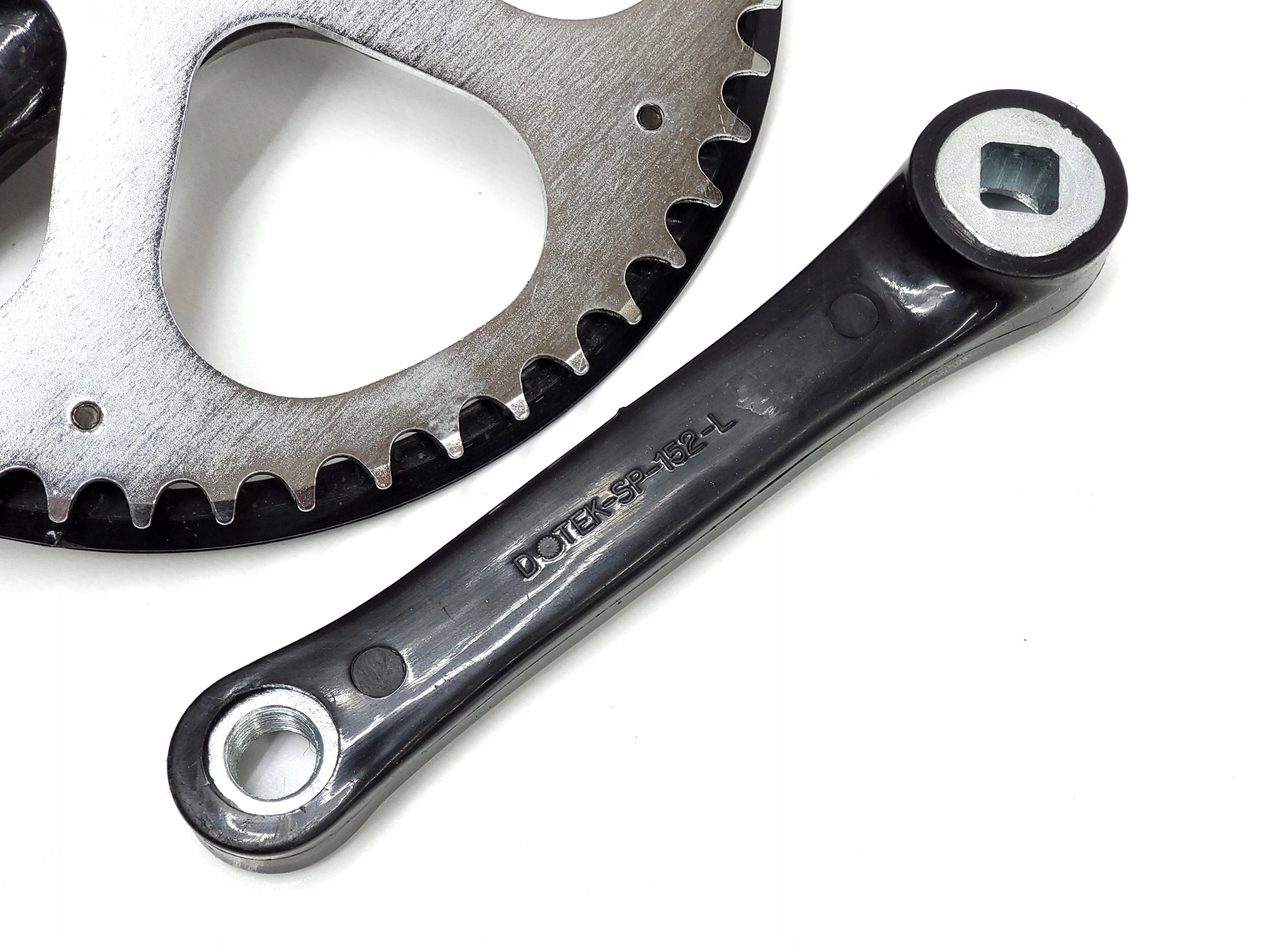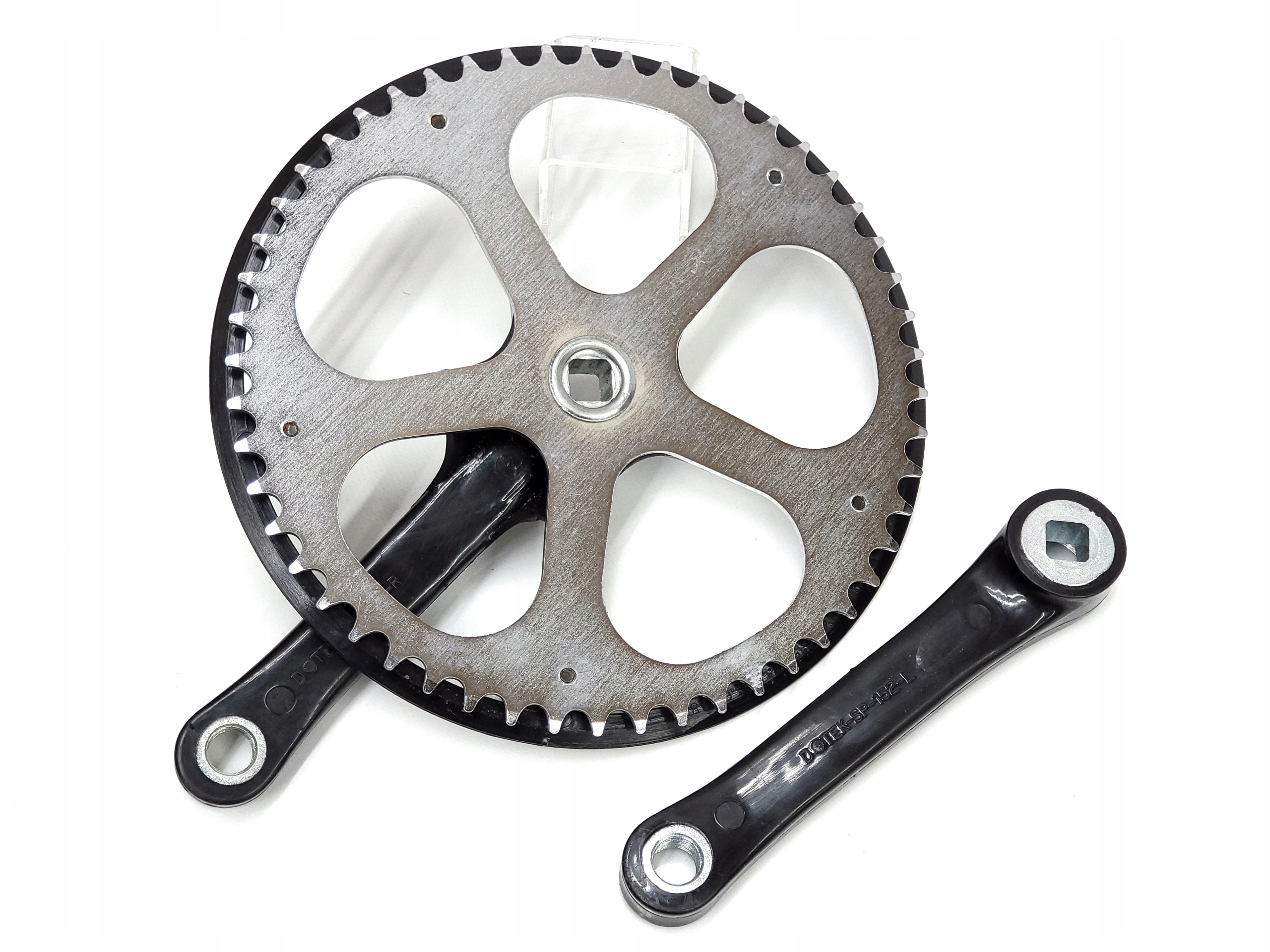 Предлагаем НОВЫЙ комплектный шатун (с рычагом) с 52 зубьями - однорядный для винтажных, электрических, городских велосипедов и т.д. Крепится к опорам на так называемых квадрат. Длина рычага от центра узла до центра оси педали: 15,5 см