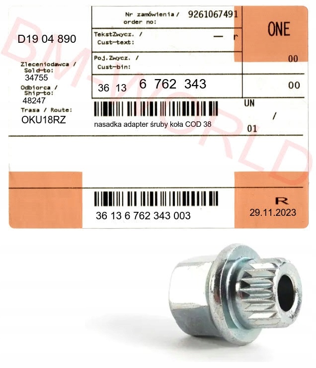Просматривая «Новый оригинальный винтовой адаптер BMW 38 с ASO», вы можете быть уверены, что данный товар из каталога «Śruby» будет доставлен из Польши и проверен на целостность. В цене товара, указанной на сайте, учтена доставка из Польши. Внимание!!! Товары для Евросоюза, согласно законодательству стран Евросоюза, могут отличаться упаковкой или наполнением.