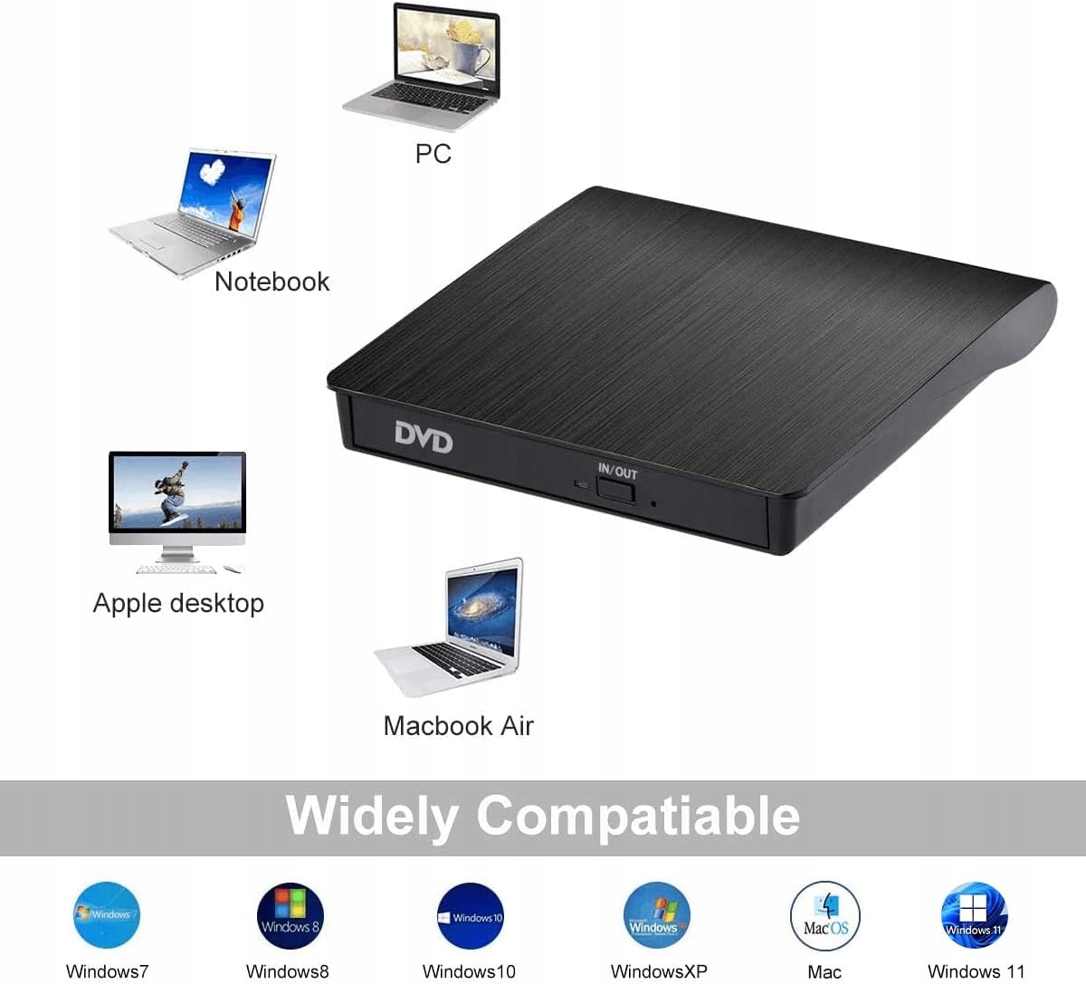 PLUG & PLAY – Простота в использовании. Питание внешнего DVD-привода осуществляется через порт USB. Никакого внешнего контроллера или источника питания не требуется. Просто подключите его к порту USB, и драйвер DVD будет обнаружен.