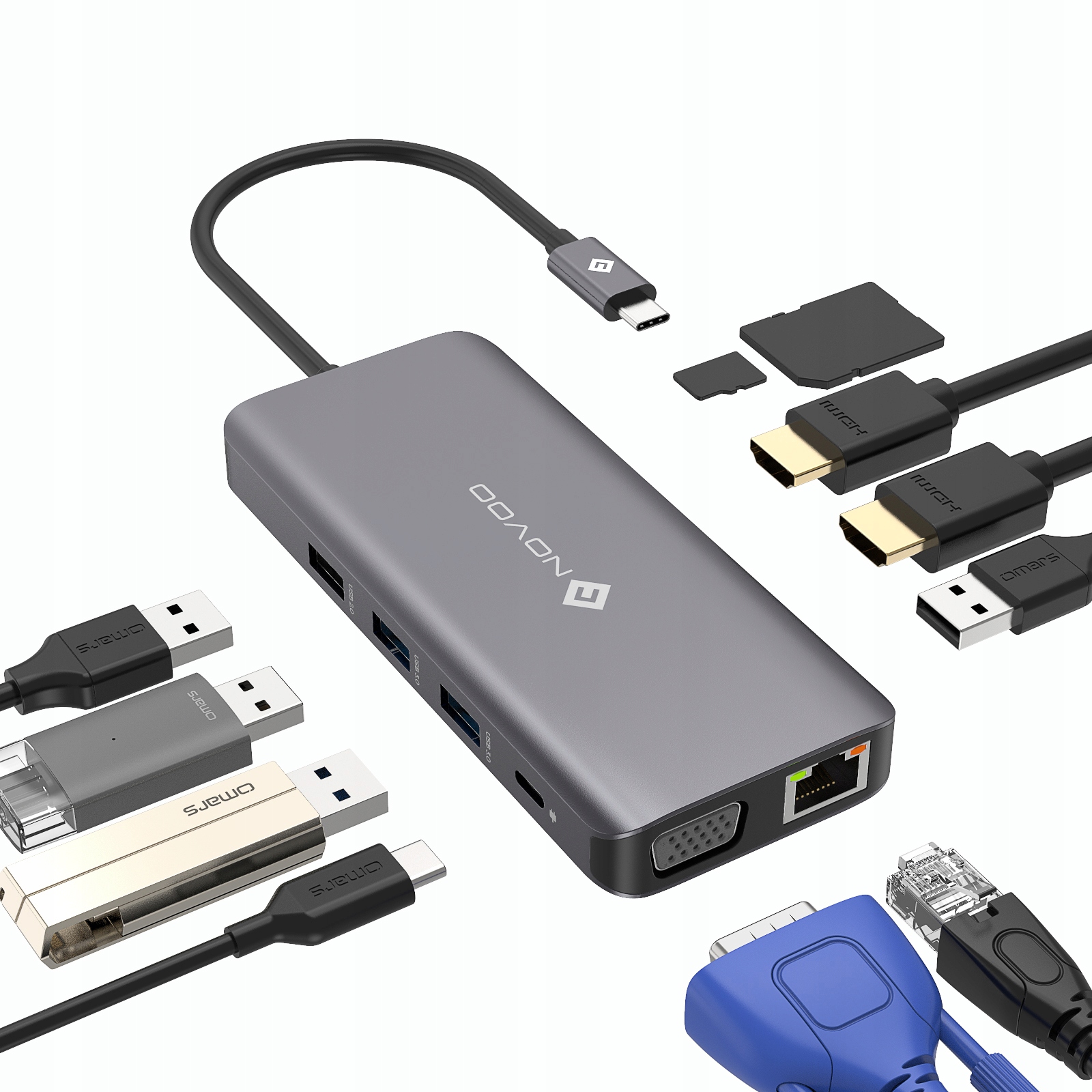 Novoo Hub USB Тип C, 11 в 1 док -станция