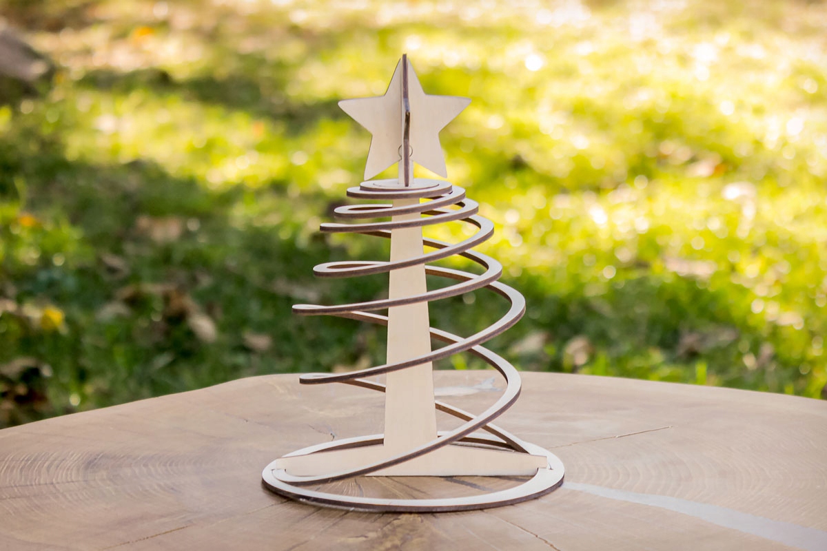 Деревянная фигурка елки станет оригинальным украшением на Рождество.