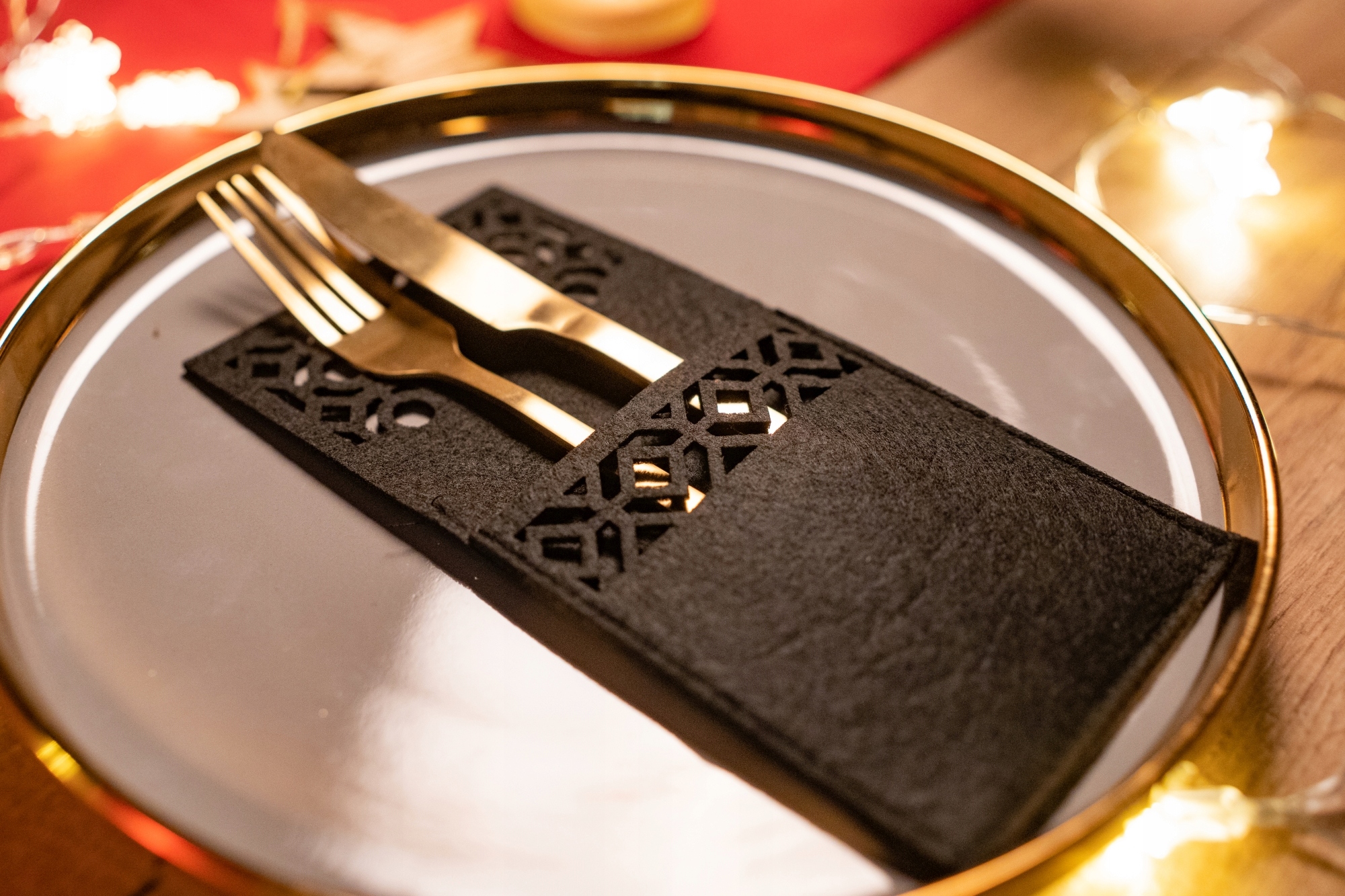 Красивые черные чехлы для столовых приборов станут прекрасным украшением дома в праздничный сезон.