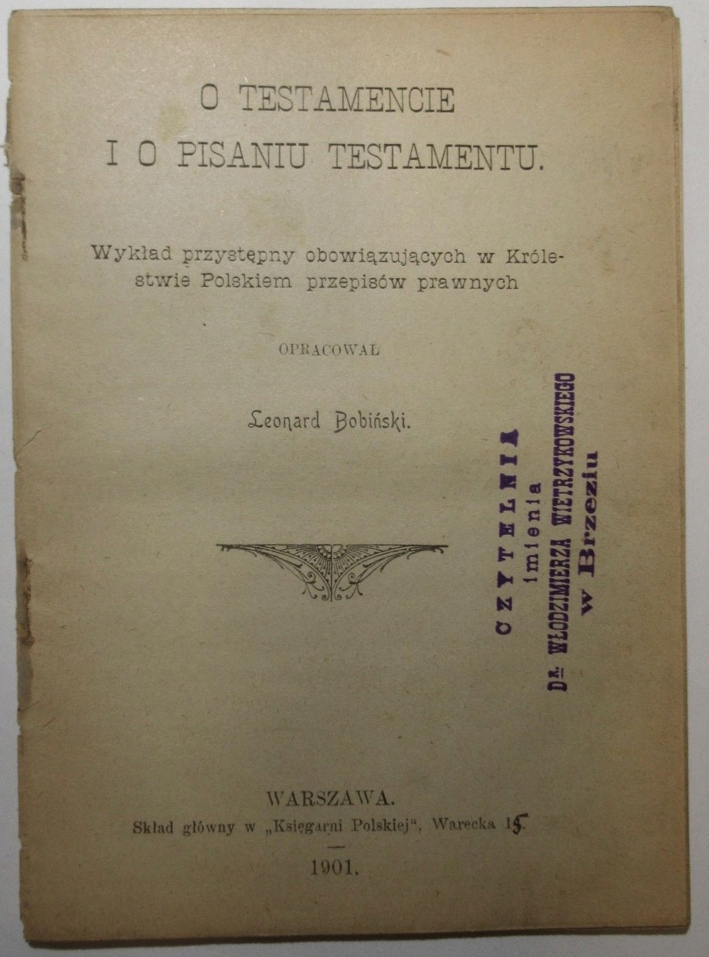O testamencie i o pisaniu testamentu, Leonard Bobiński, 1901
