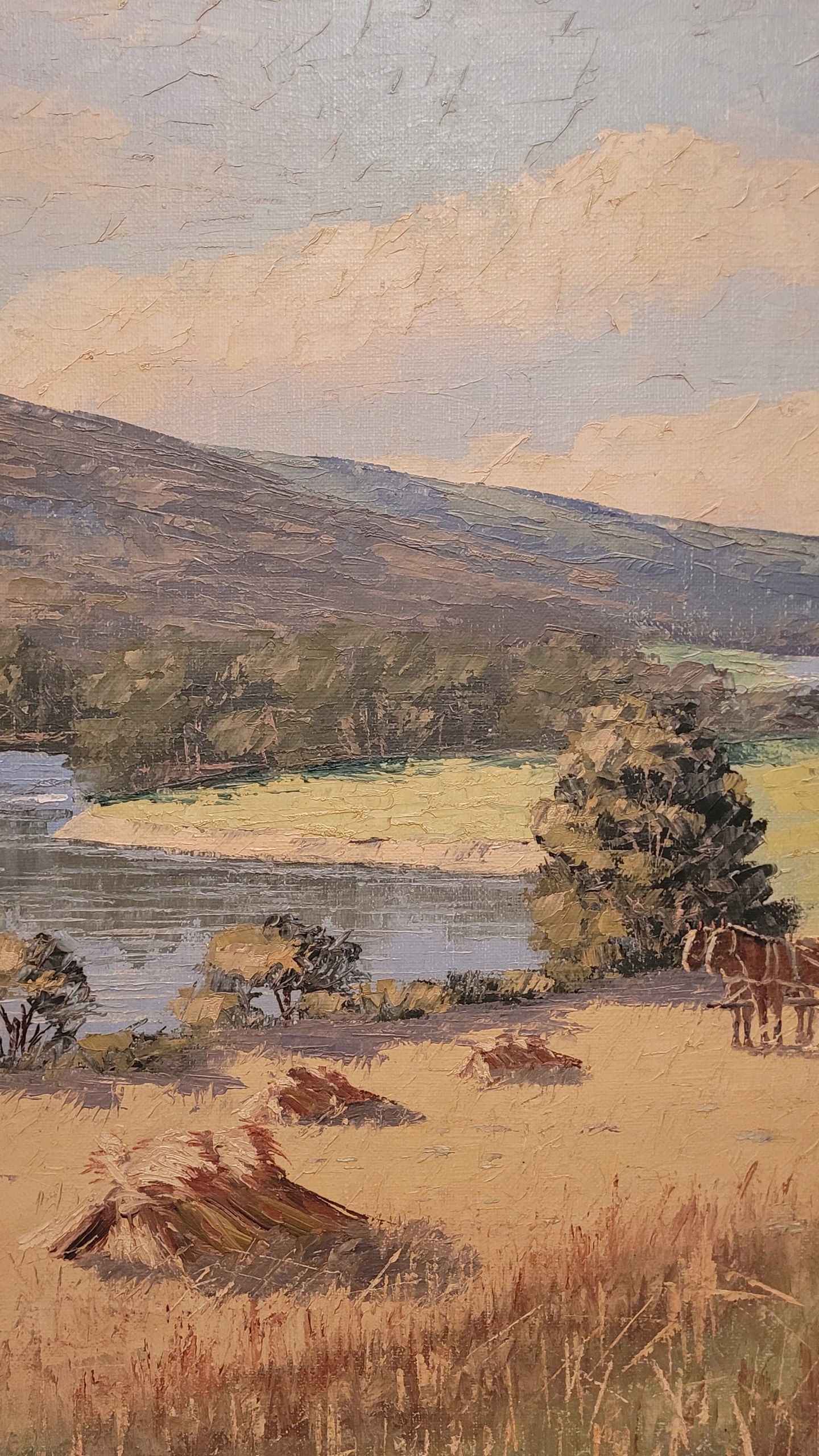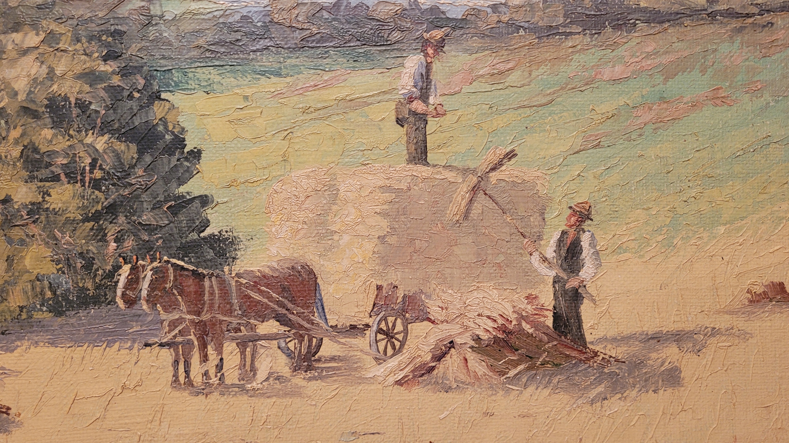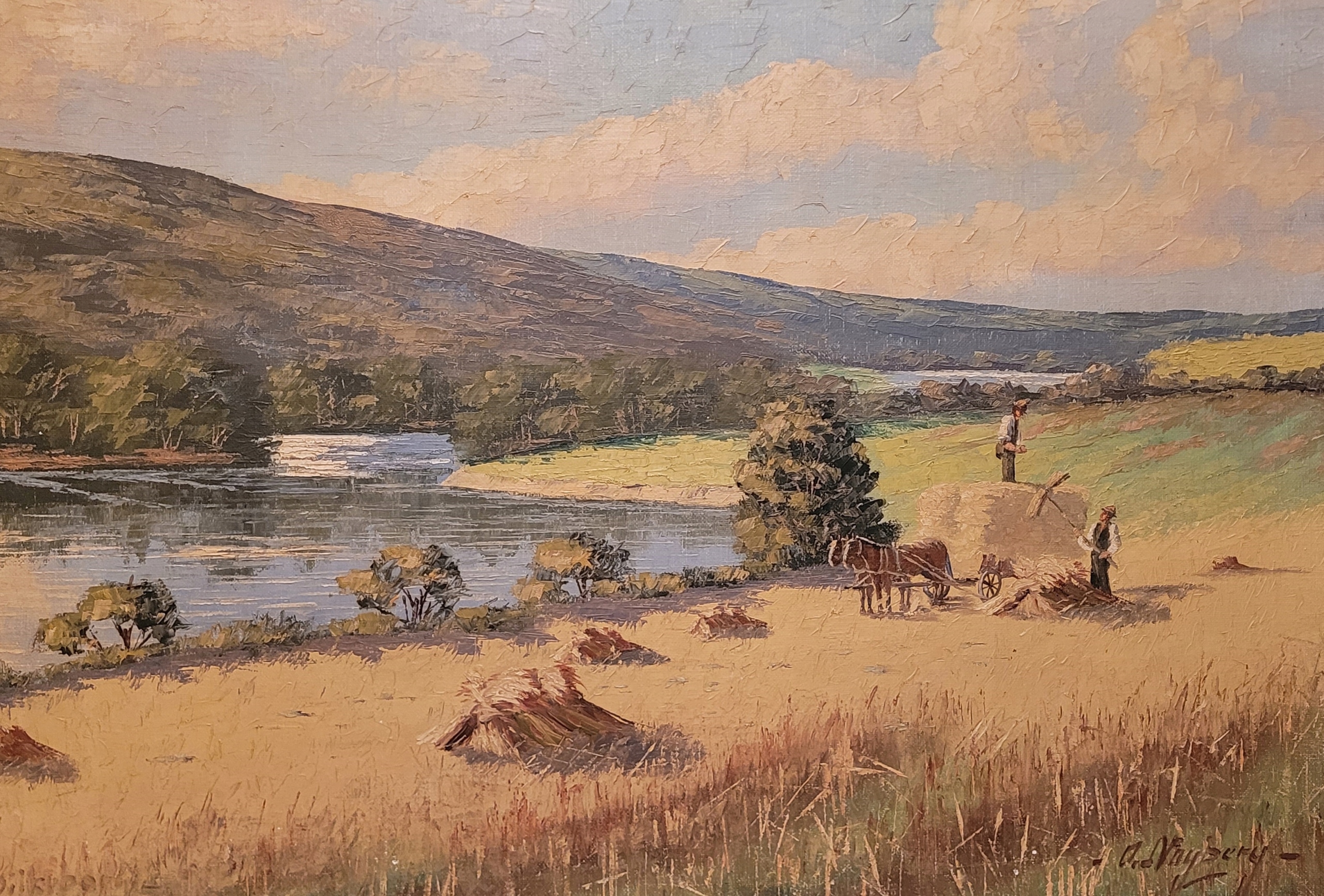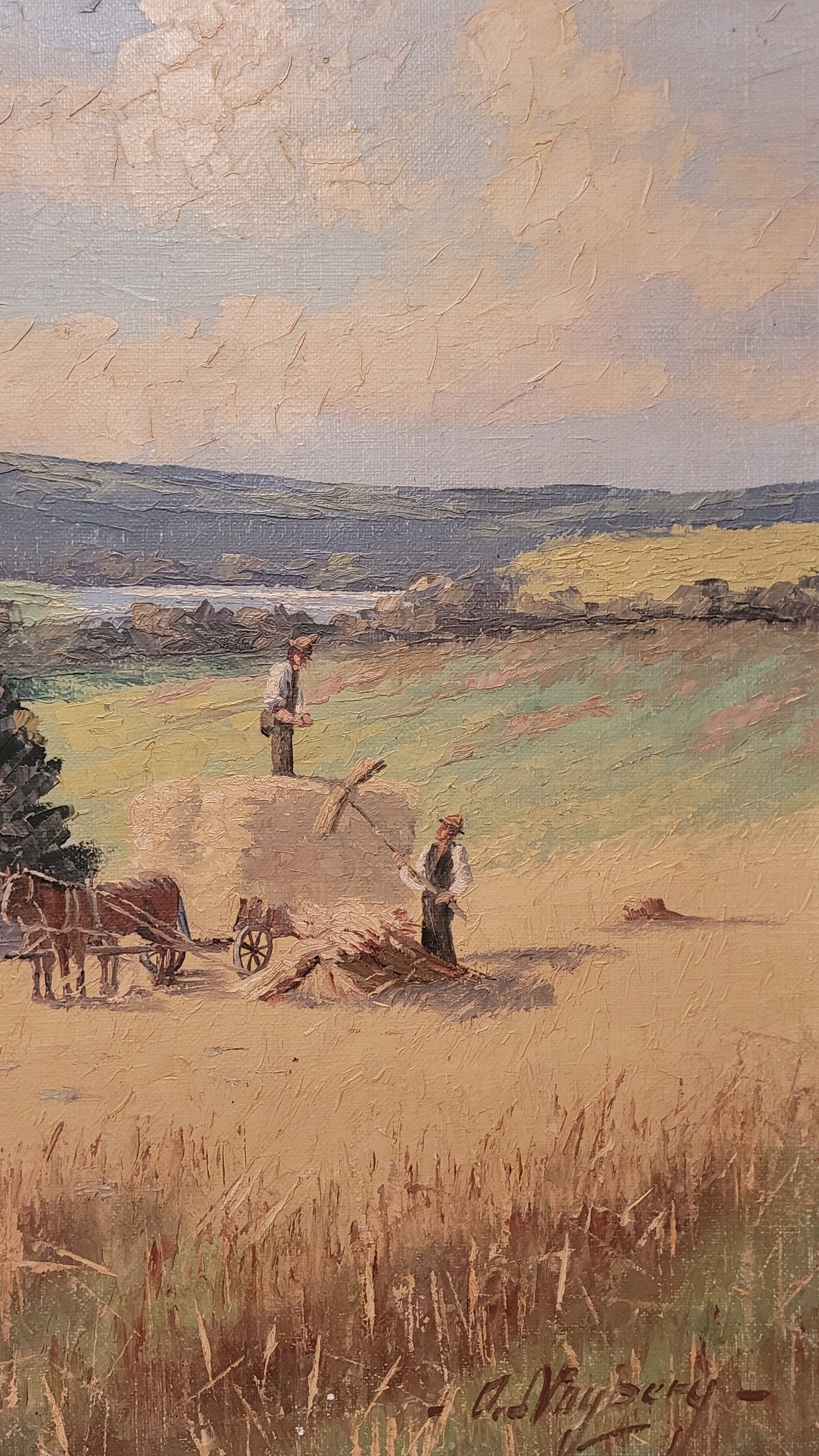 O.Noyberg - «Летний пейзаж - урожай», красивая, старая нефтяная картина.
