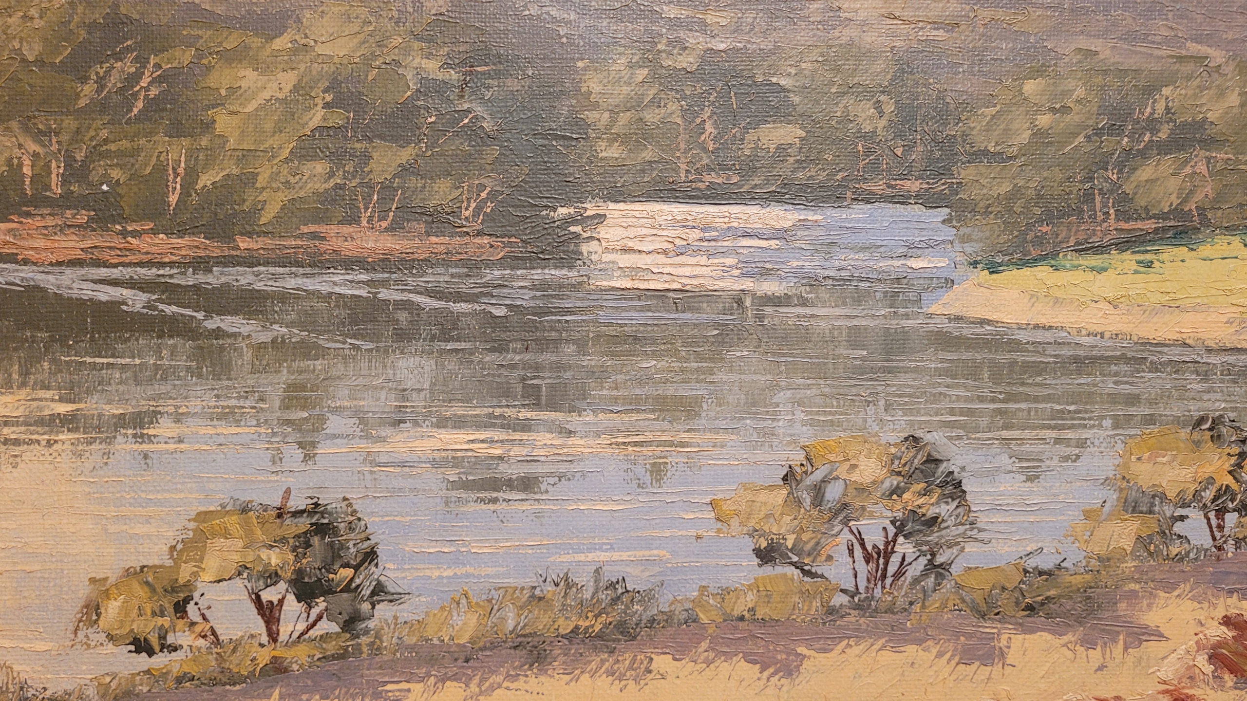 Тема продажи - красивая старая нефтяная картина «Летний пейзаж - урожай».