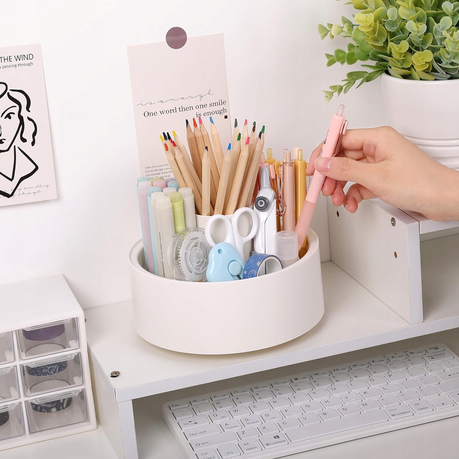 Обертовий органайзер SKYDUE для ручок, олівців, посуду, білий на 360 градусів