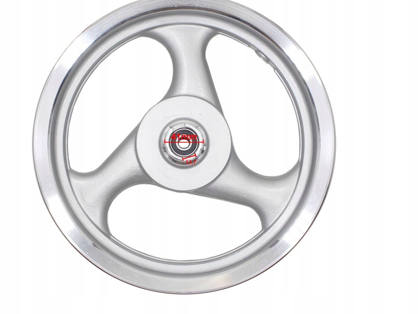 Передний обод 12 дюймов подходит для скутера Benzer Syracuse 2,5 X 12, установлен на штифте диаметром 10 мм (внутренний диаметр подшипника). На ободе имеется шлиц для троса спидометра. Он приспособлен для установки дискового тормоза.