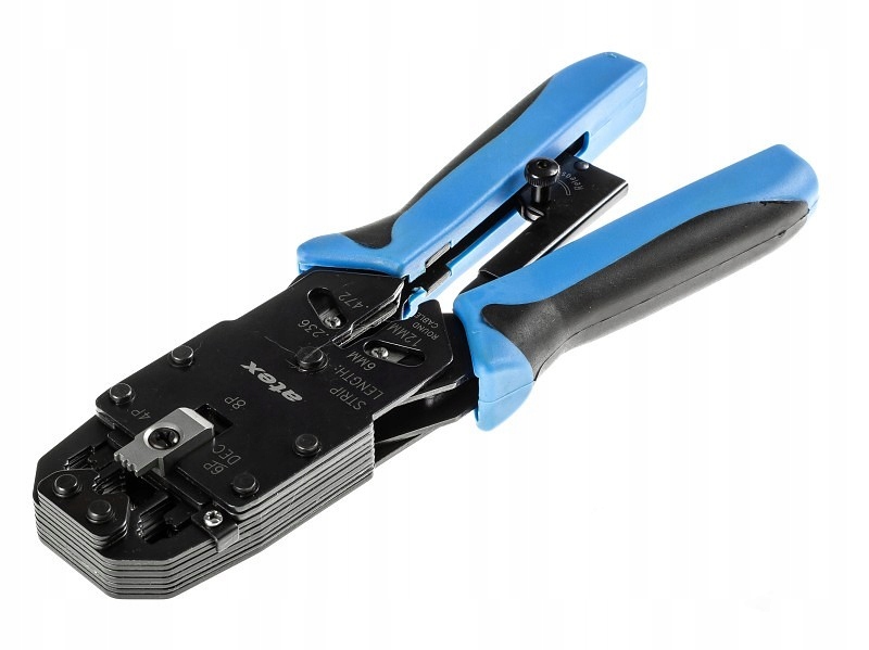 Инструмент обжимает 4p4c, 6p2c, 6p4c (RJ11 ), модульные вилки 6p6c (RJ12), 8p8c (RJ45).