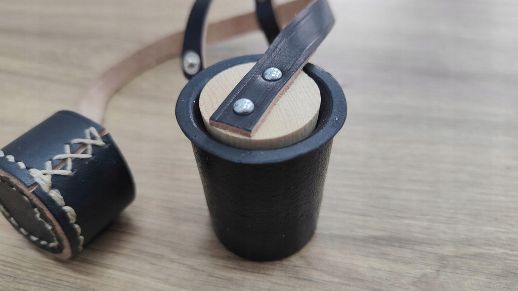 Очень хорошее качество и очень точное воспроизводство кожаного покрытия для глазного телесного снипера. В той части, где телескоп был закончен резиновым глазом, крышка имеет деревянную пробку. Обложка была сделана вручную из профессиональной кожи профессиональной кожей, согласно историческим реалиям.