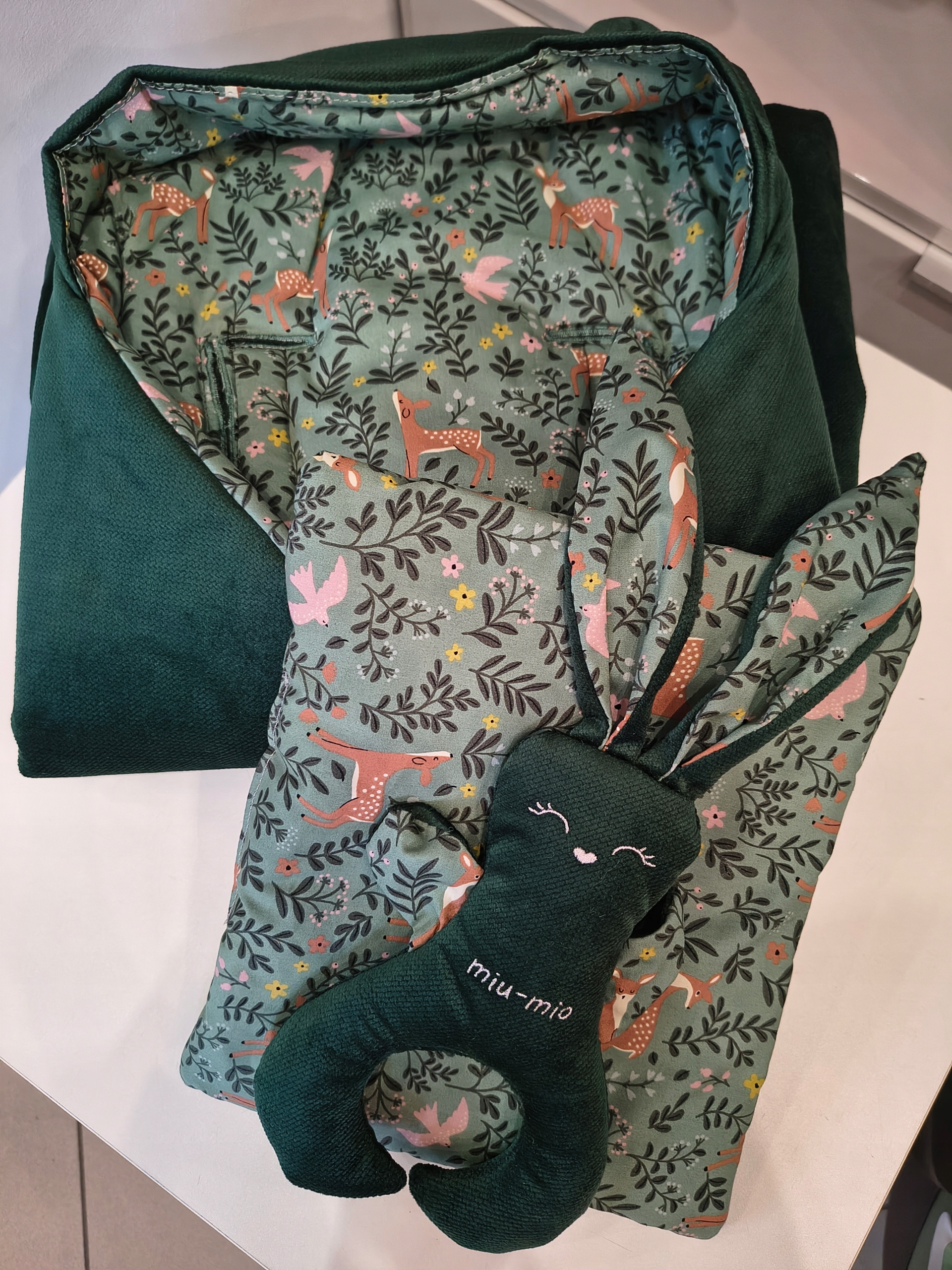 Детский набор 0+, который включает в себя мягкий и теплый Swaddle, подушка и очаровательная Mascot.