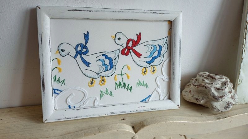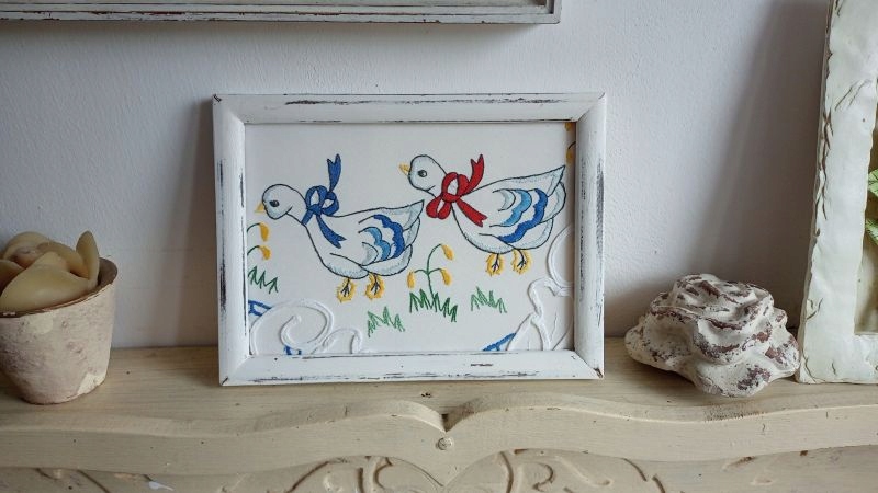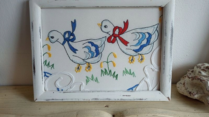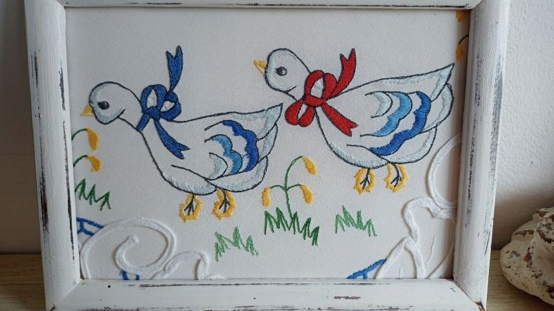 OBRAZ GĄSKI DEKOR Z HAFTEM W RAMCE