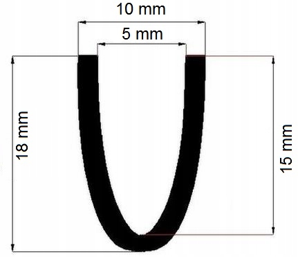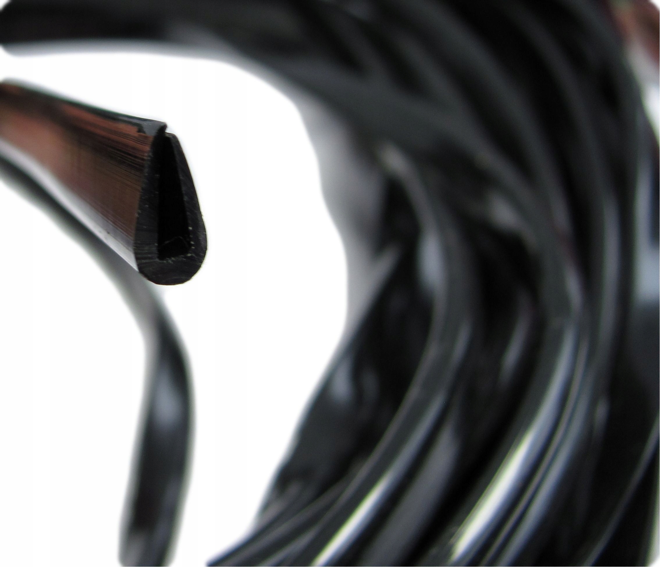 Качественная кромочная лента польская, черная - из мягкого ПВХ (ПВХ) - как резина с U-образным профилем, размеры 10 мм х 18 мм.