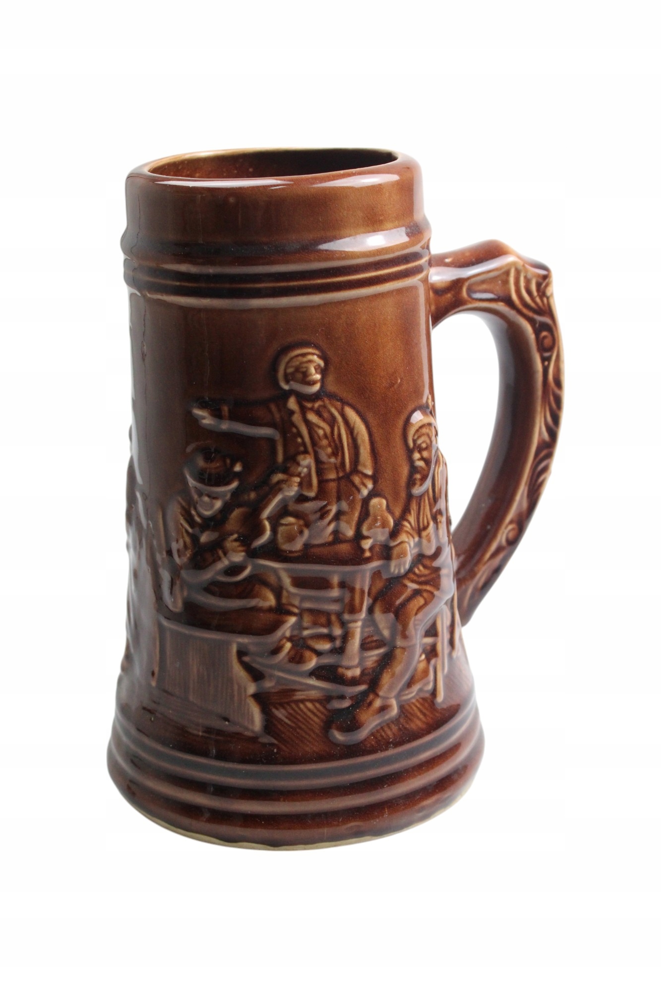 Я буду продавать большую керамическую кружку, подписанную, застекленную, украшенную жанровыми сценами с украшенной ручкой. Есть надпись на круге