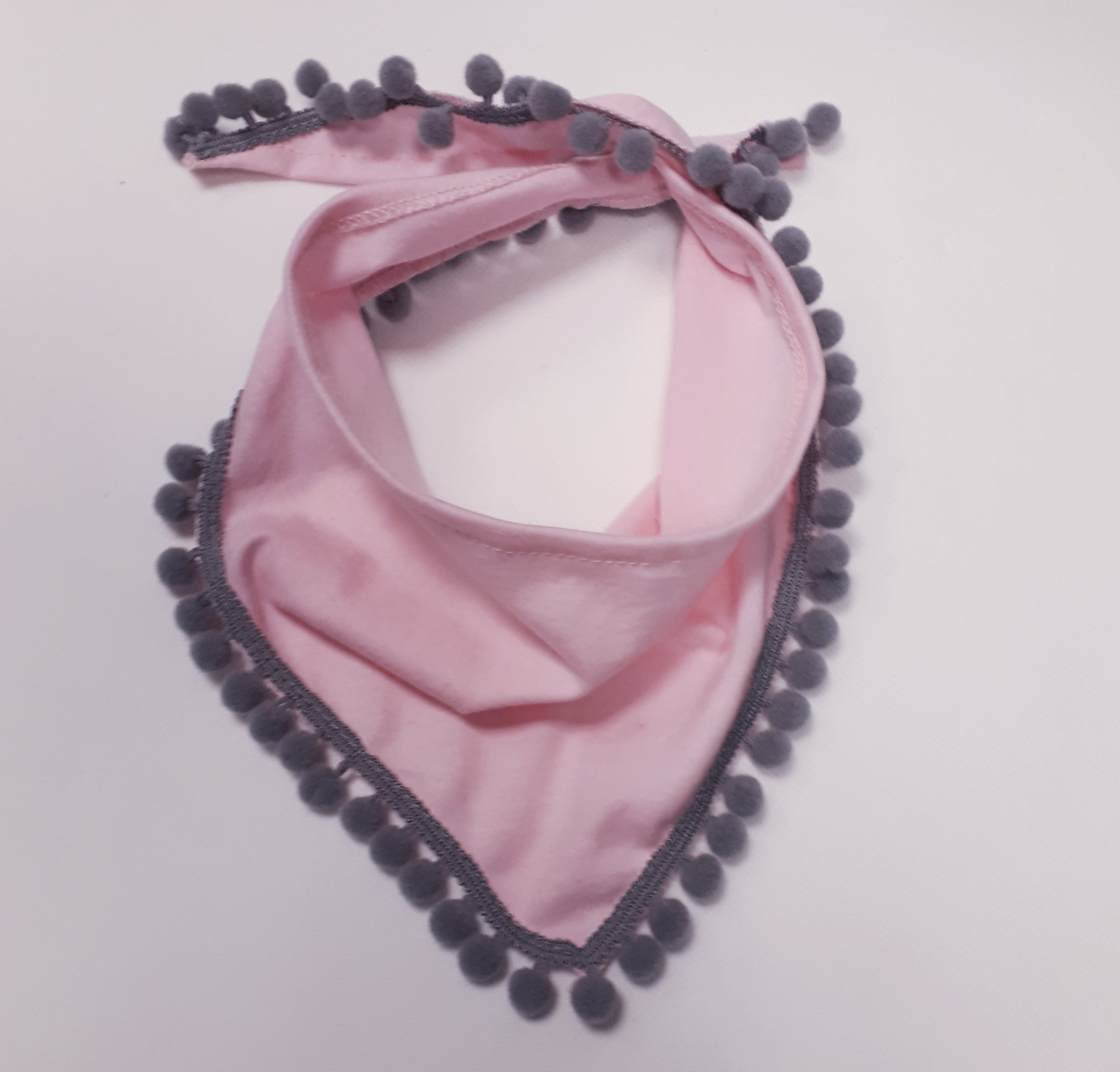 - Детский шарф с помпонами. Шарф треугольной формы, который завязывается под шеей. Модно и эффективно. Изготовлен из одного слоя материала. Он отлично защищает от холода и выглядит фантастически.