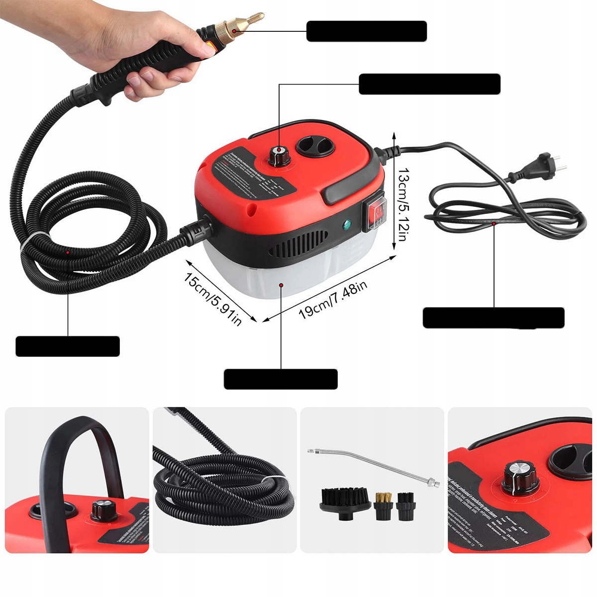 Парламент, портативный, ручной паровар с вместимостью 2500 Вт, устройство для очистки с высокой температурой и давлением с головками щетки для кухни, мебели, ванной комнаты и автомобиля (черный и красный) h1>