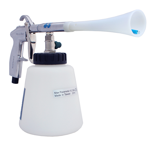 Пистолет, благодаря специальной форме сопла с вращающимся сердечником, создает пульсирующее давление, которое распыляется активным чистящим средством. Таким образом, так называемый эффект Tornado , который с большой силой удаляет все примеси и пыль >