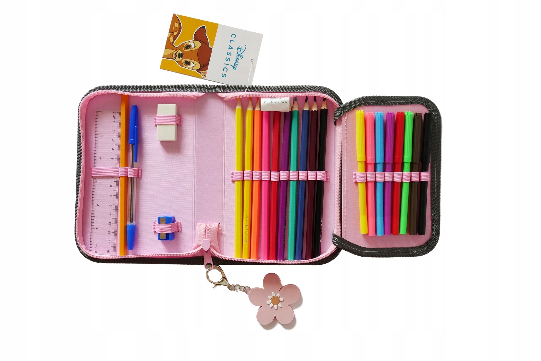 Школьный карандаш с оборудованием для 1 блокировки имеет 2 -кратные флип -помещения, что характеризуется модным рисунком из серии Bambi и тщательной производительности эстетических и сильных материалов. Он очень полезен в школе из -за своей большой мощности, благодаря которой в нем легко организовать школьные аксессуары, а после складывания это занимает мало места. Все закреплено сильным замком