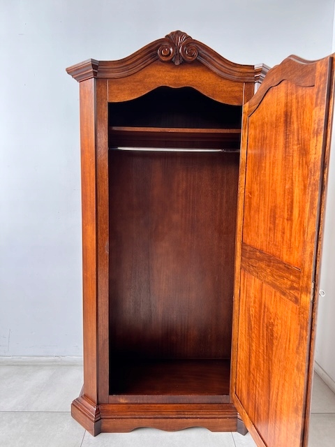 Шкаф однодверный. Двери имеют впечатляющие вставки, которые привлекают внимание. Он находится в хорошем состоянии. Повреждений и дефектов нет. На нем видны типичные следы использования; мелкие царапины и потертости. На правой полосе на высоте замка имеются следы предыдущего ремонта. Внутри есть бар. Шкаф не подлежит разборке и доедет к новому владельцу в целости и сохранности. Готов к размещению.
