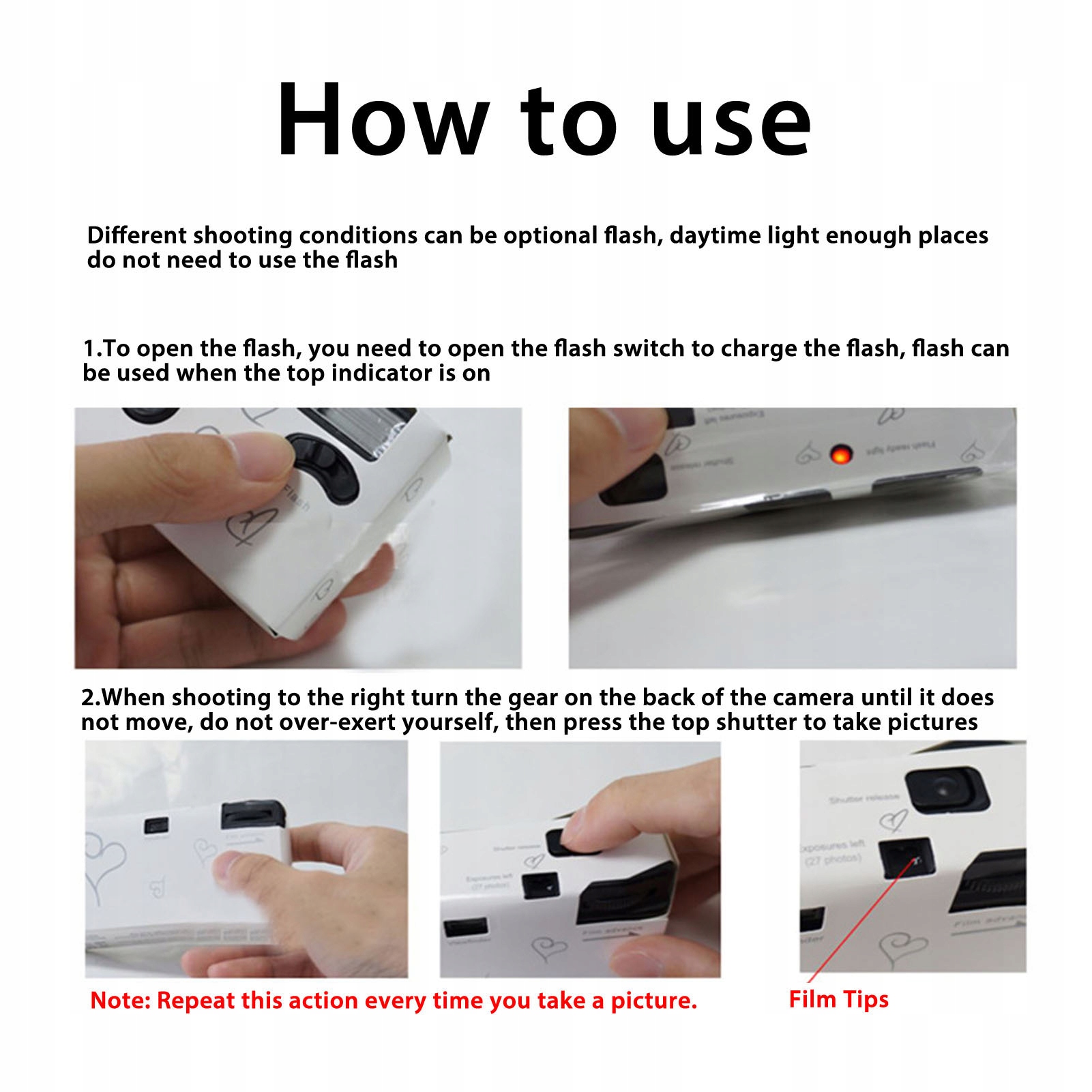 1. Поверните колесо фильма, пока оно не остановится перед каждым выстрелом.