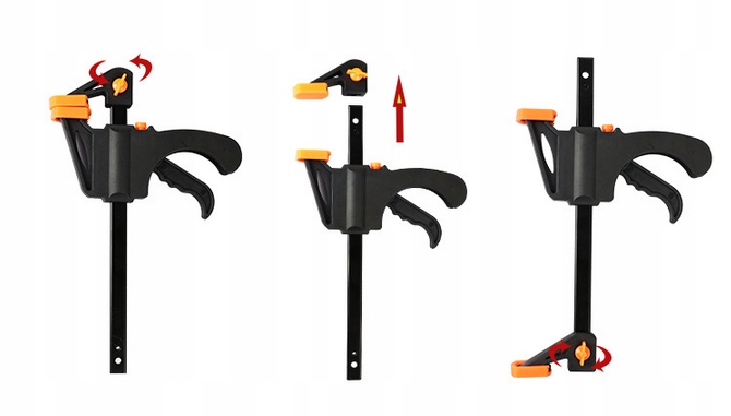 ✔️ Качественный столярный струбцина для одной руки. Система быстрого скольжения позволяет управлять зажимом одной рукой. Имеет возможность перемещать верхнюю челюсть и использовать зажим как распорку.