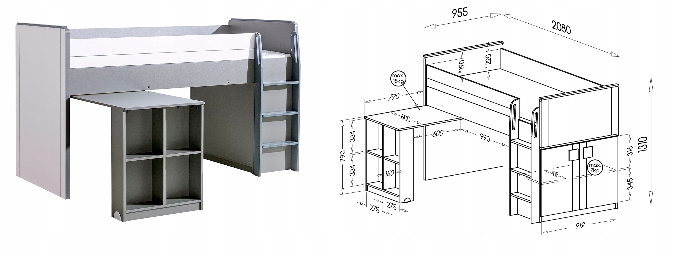 Односпальне ліжко 90 двоярусна антресоль з письмовим столом