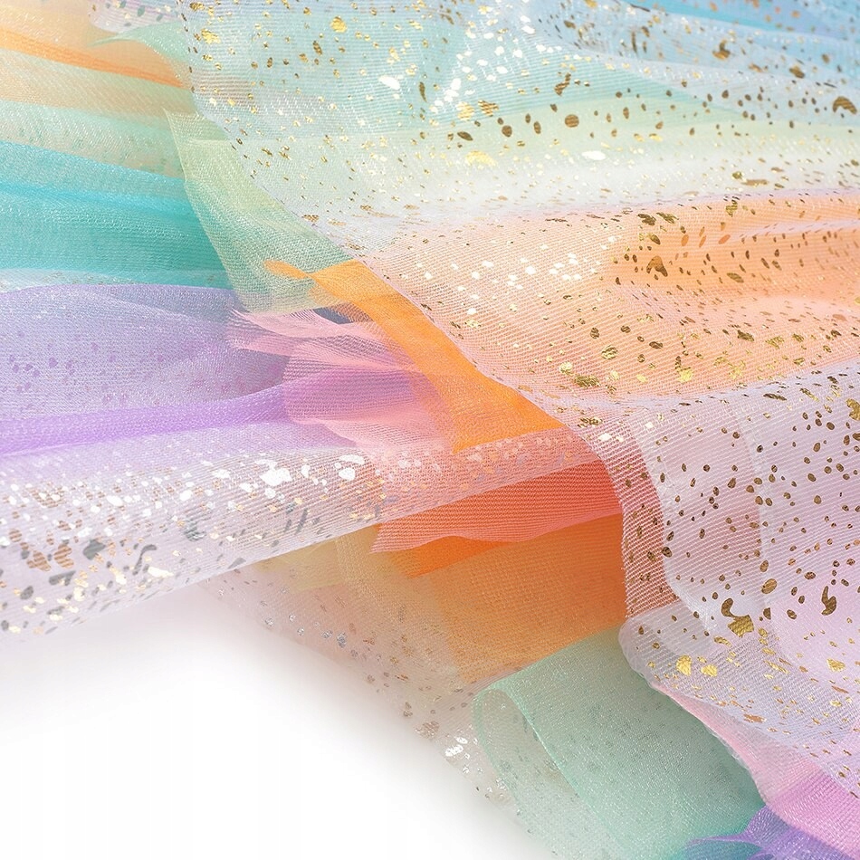 Платье, сделанное из многополосного и мерцающего тюля. Дополнительно украшен золотом. Все на подкладках. Задняя часть асимметричного, расширенного платья - оно прекрасно превращается;)
