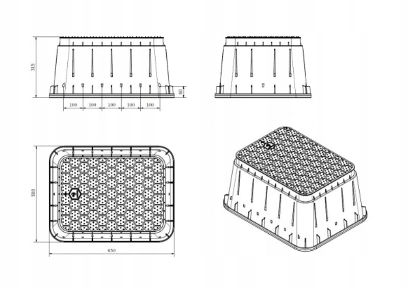 Крышка люка установлена изготовлен из пластика (полиэтилена PEHD), устойчивого к погодным условиям и УФ-излучению. Доступ внутрь камеры обеспечивается винтом INOX.