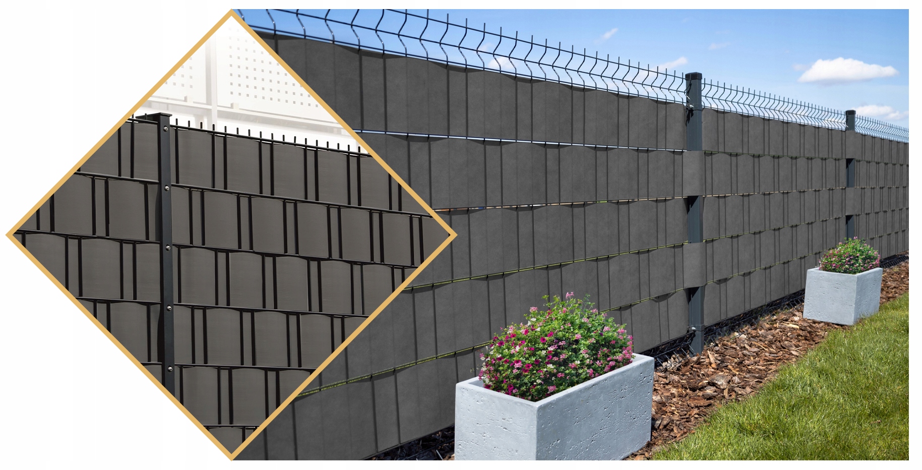 ЛЕНТА ДЛЯ ЗАБОРА 19смХ33м + 26 КЛИМПОВ +УФ-КРЫШКА ДЛЯ ЗАБОРА ПАНЕЛЬ ЗАБОРА