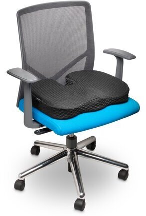 - Прочный и эргономичный дизайн обеспечивает максимальный комфорт и облегчение боли при ишиасе за счет минимизации контакта между копчиком и сиденьем благодаряуникальному U-образному вырезу.