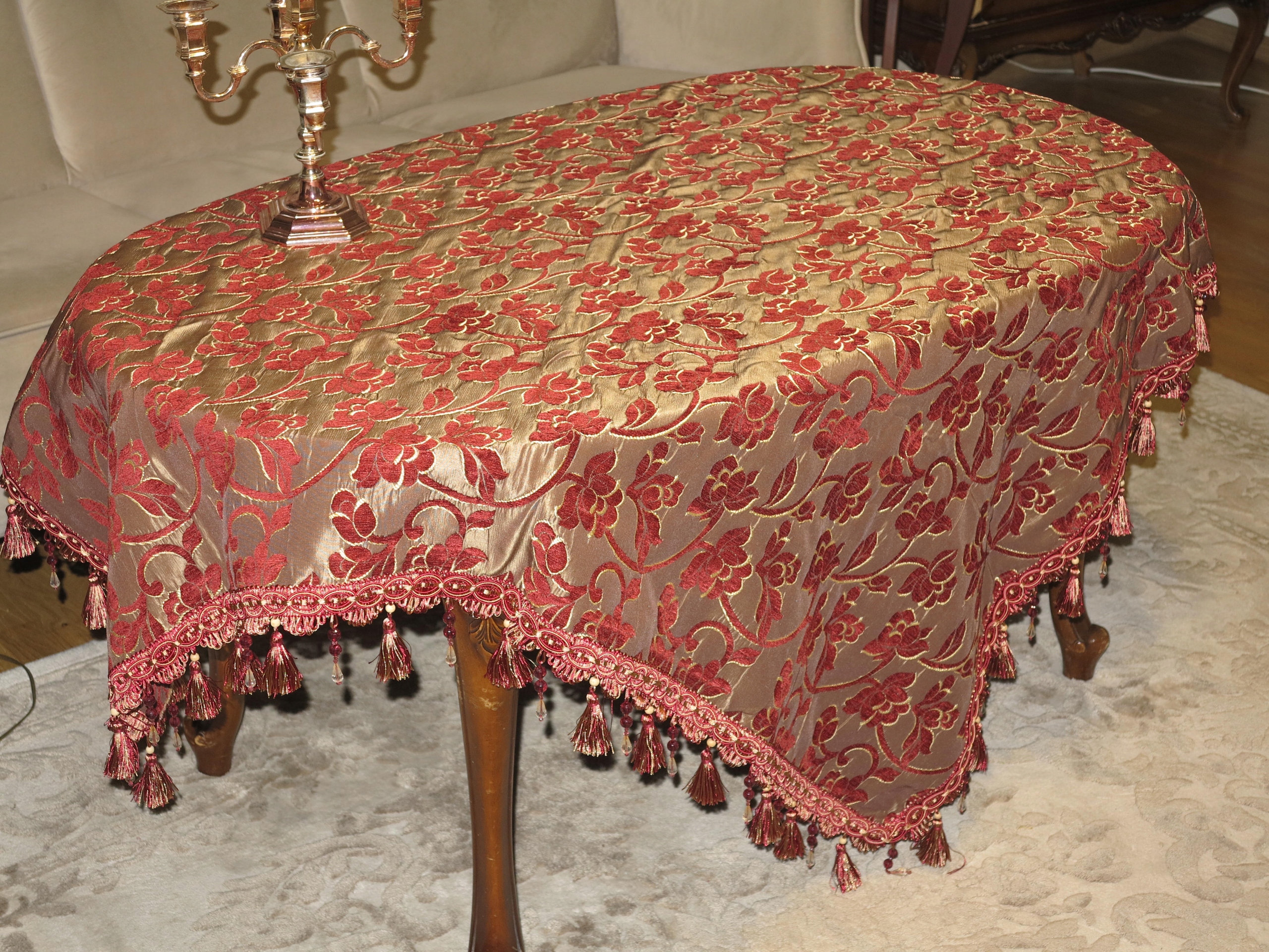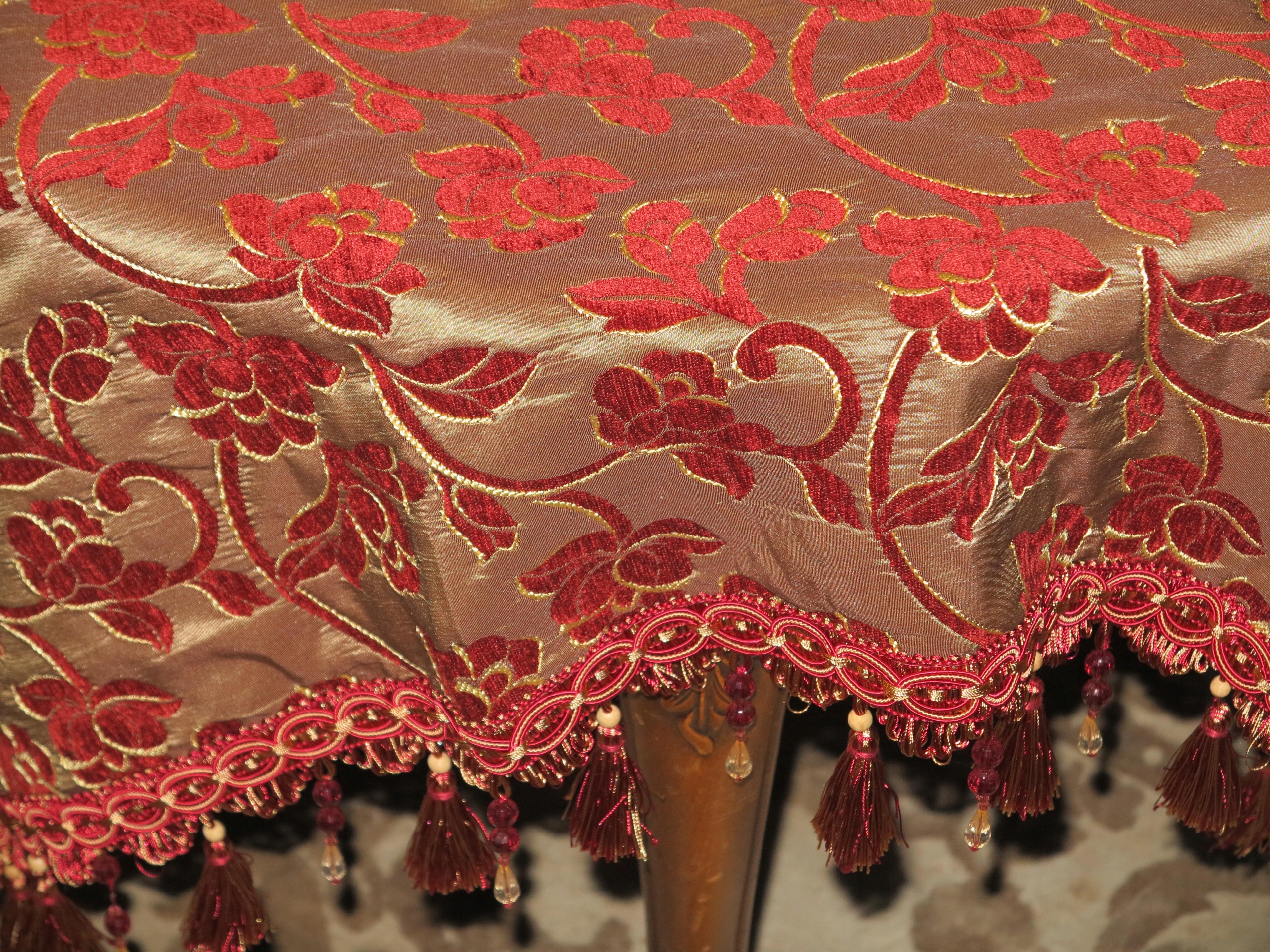 дворец и чрезвычайно красивая стильная скатерть гобелена с акасамитным рисунком. Приблизительно украшены толстым габеродом с пикотами, украшенными кораллами