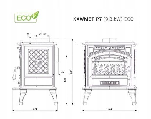 Отдельностоящая печь KAWMET P7 (9,3 кВт) ECO