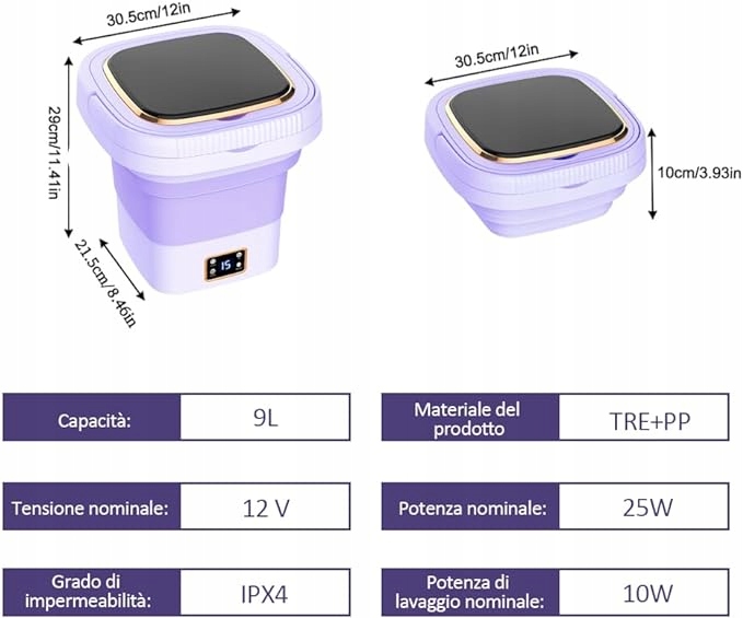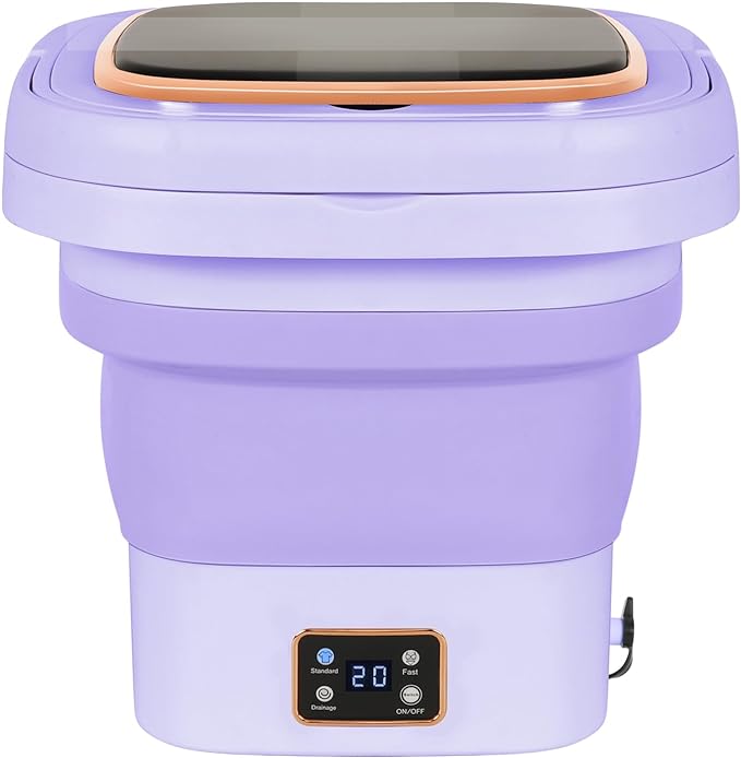 Портативная мини-стиральная машина с отжимом емкостью 9 литров, идеальна для кемпинга, складная, 3 режима работы, цифровой экран, таймер для путешествий, дома, кемпера (фиолетовый)