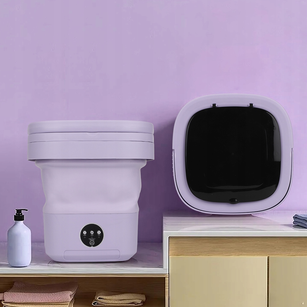 - Эта миниатюрная стиральная машина специально разработана для его можно было сложить в небольшой чемодан и легко транспортировать. Если вы хотите постирать, просто разложите стиральную машину и положите в нее одежду.