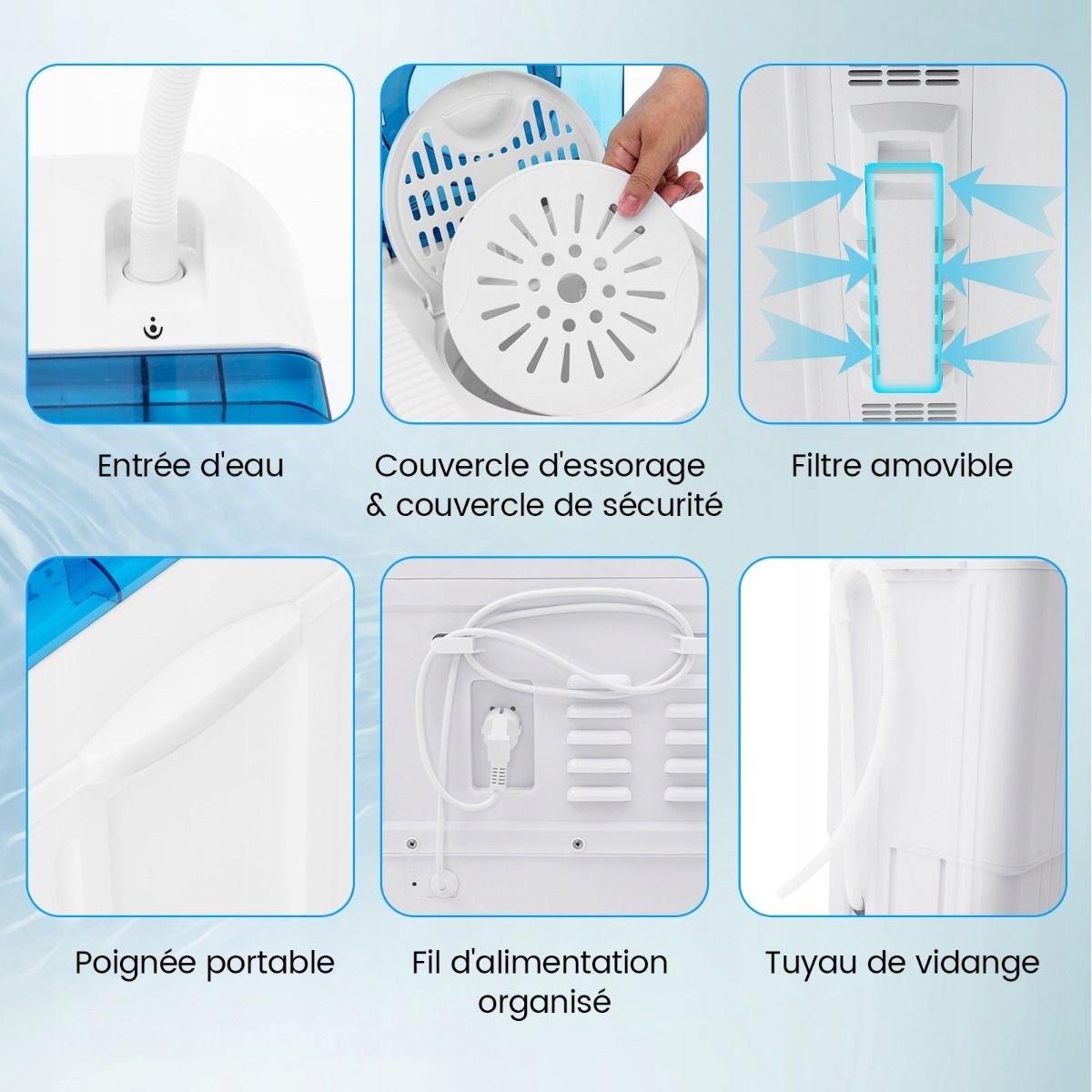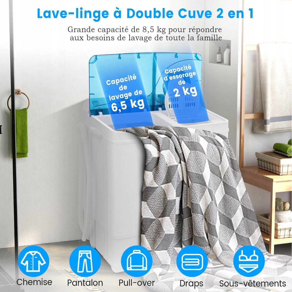Стиральная машина 2-в-1 с 2 баками сочетает в себе стирку и вращение, обеспечивая большой комфорт и простоту использования. 2 мощных мотора ускоряют стирку, сокращая при этом время и энергопотребление. Загрузка для стирки 6,5 кг и емкость для отжима 2 кг удовлетворят ваши основные потребности в стирке, например, рубашек, свитеров, простыней, нижнего белья и брюк. Он компактен и идеально подходит для кемпинга, общежития, квартиры. Без сомнения, это будет отличный выбор с точки зрения удобства стирки.