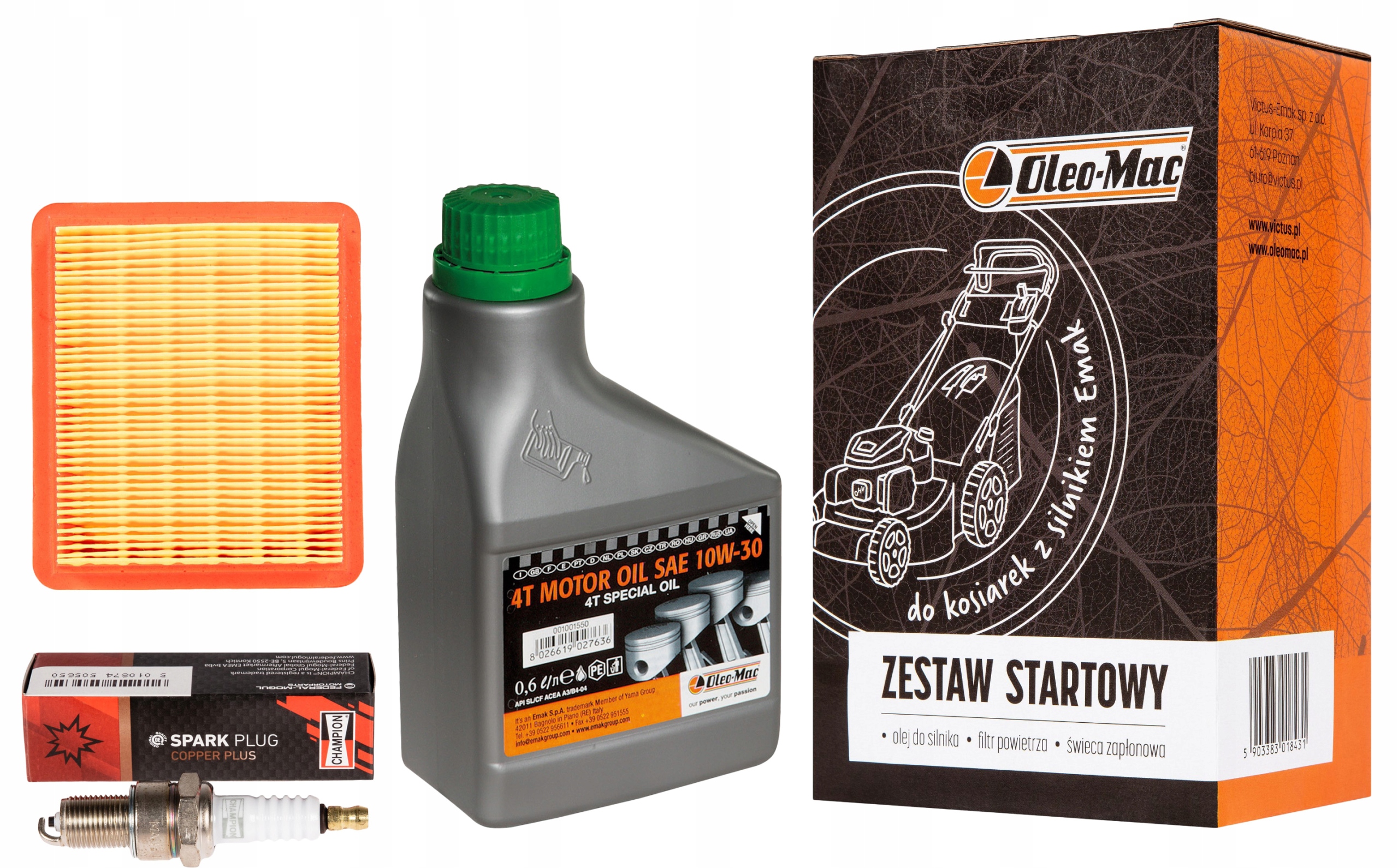 стартовый комплект для косилок h1> Набор включает в себя: h2> - моторное масло b> -Loleo-mac SAE10W-30 (600 мл, минерал) для двигателей с четырьмя шагами, воздушного охлаждения и воды, используемой в саду. Масло содержит специальную смесь добавок, которые делают его отличные свойства в качестве моющего средства, диспергирования, антиоксиданта, а также защиты от коррозии и потребления. Превышает спецификацию: API SG/CE, MIL - L - 2104 D, MIL - L - 46152 C.