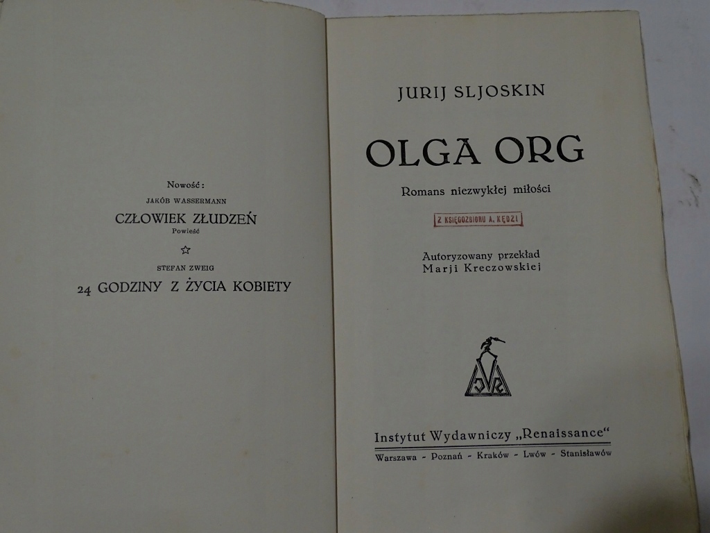 OLGA ORG POWIEŚĆ ROMANS JURIJ SLJOSKIN 1930