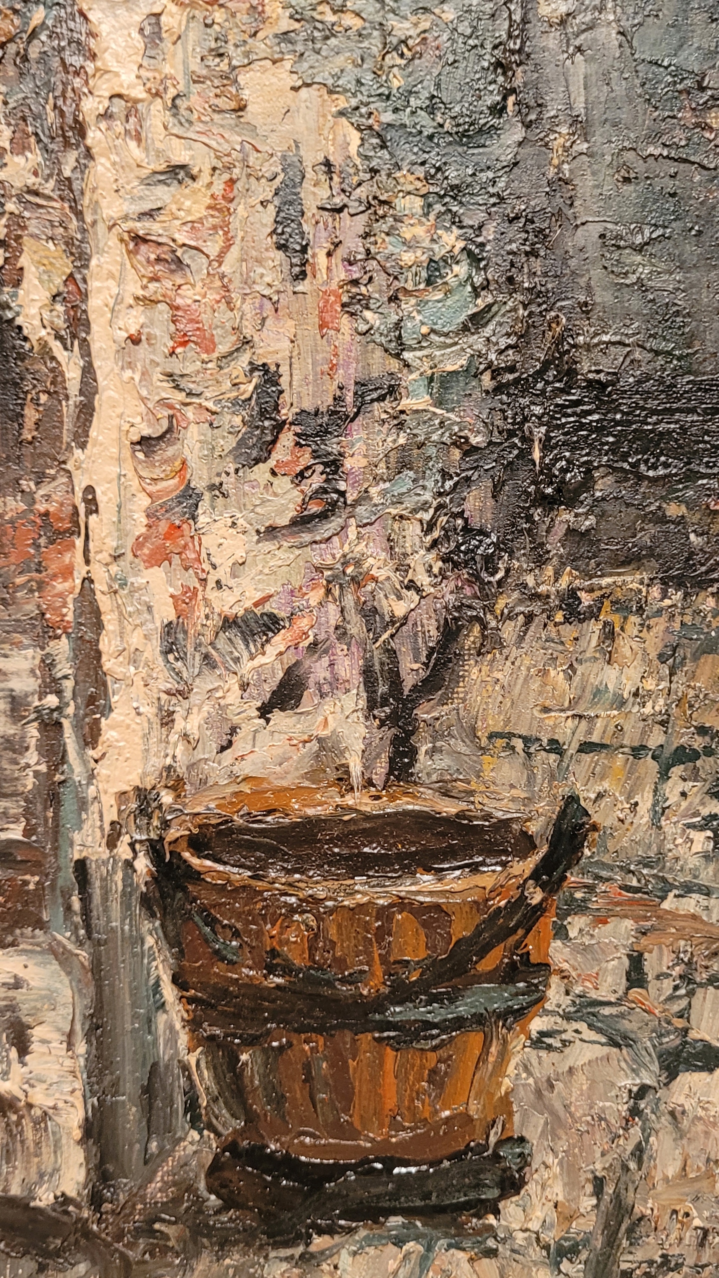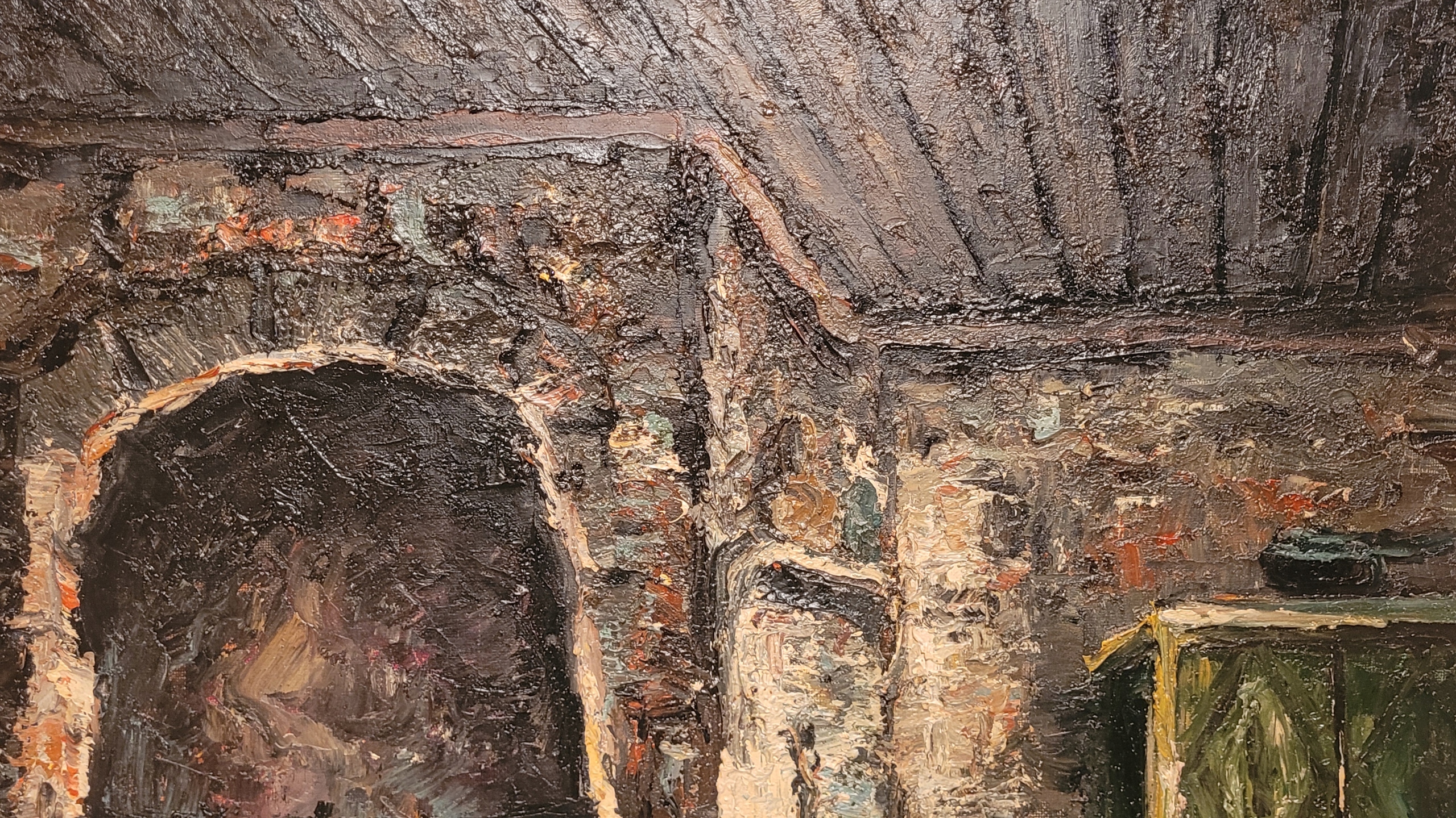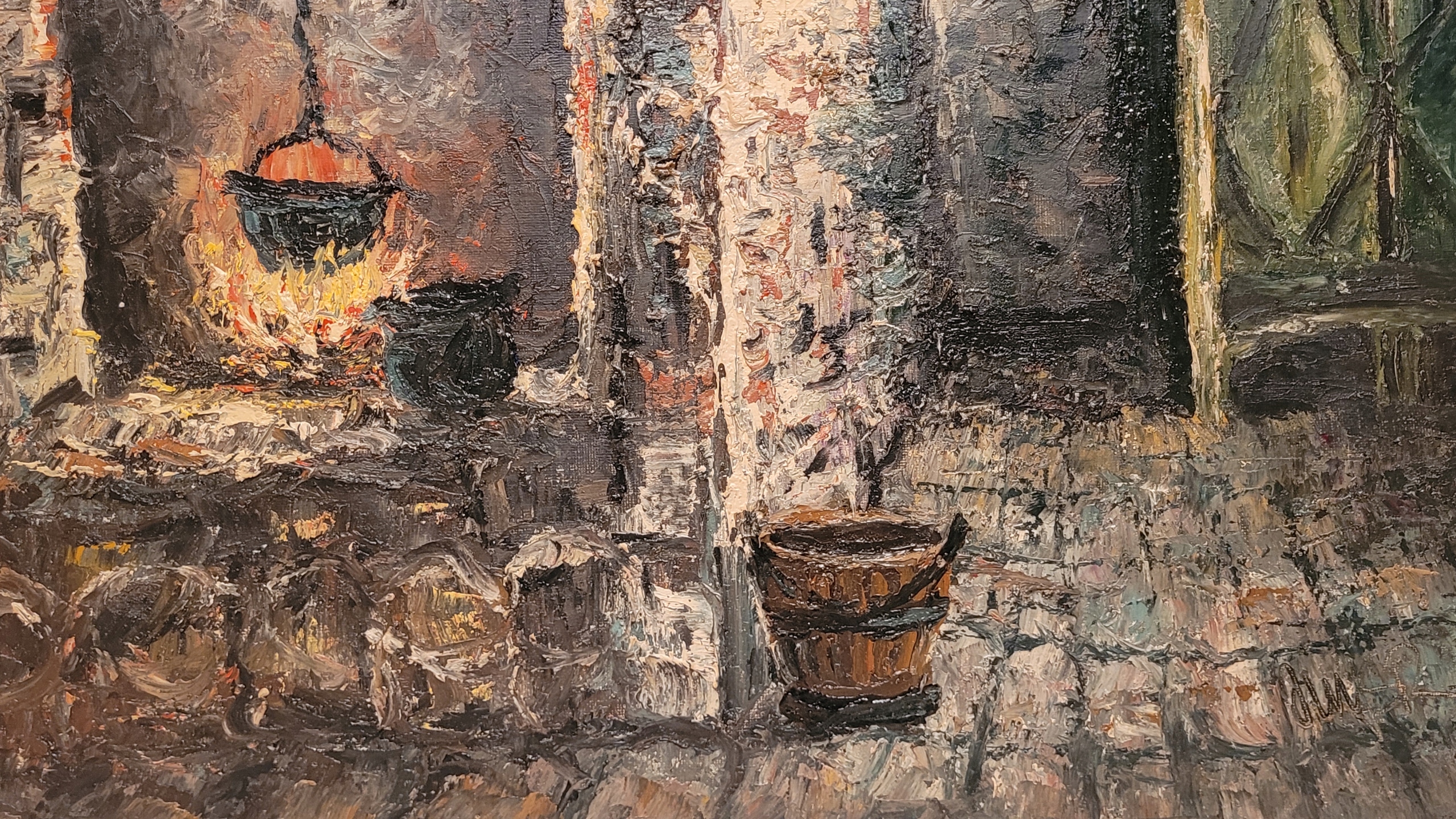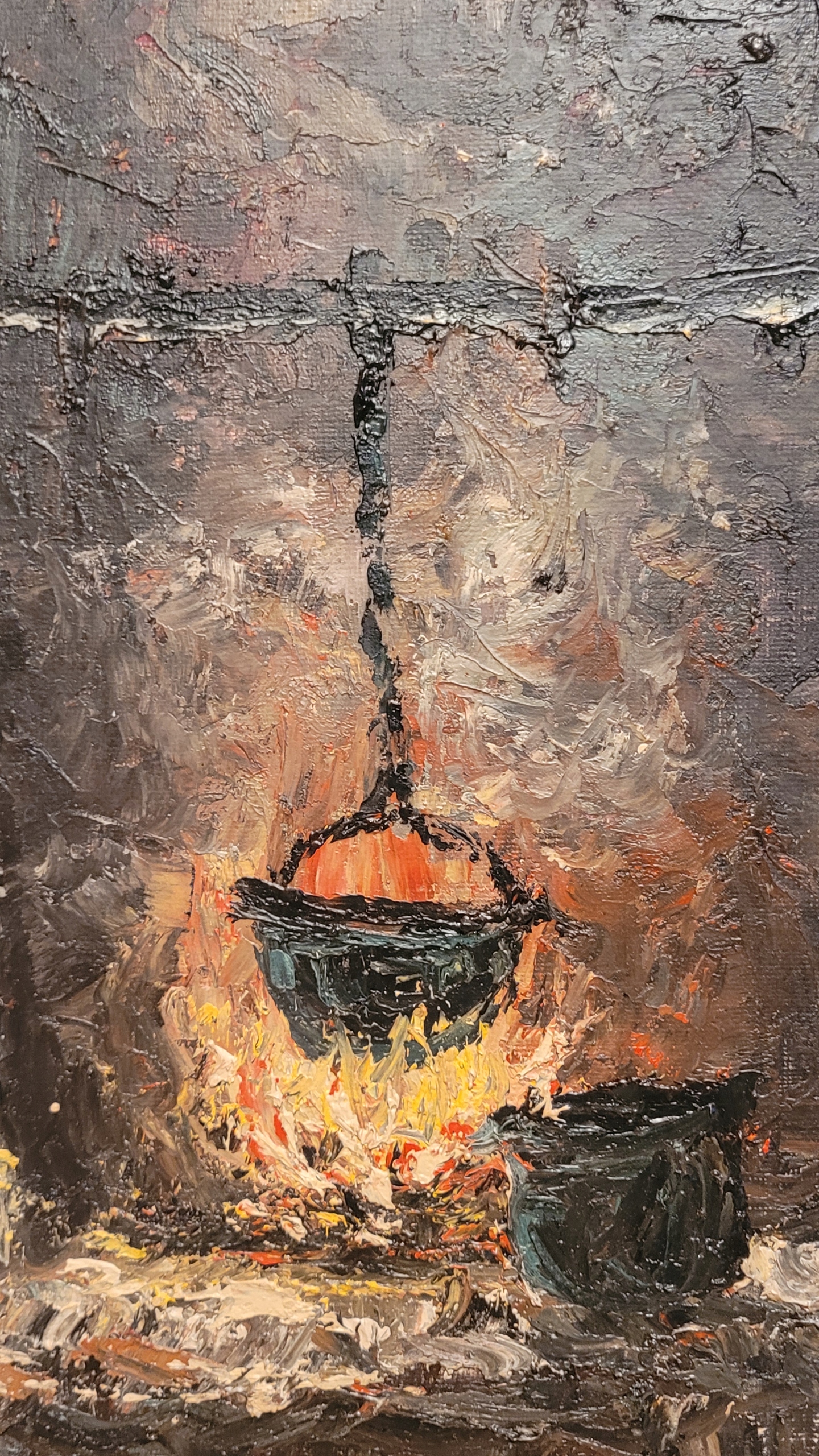 Oluf Sorensen Randbol (1921 -) - «На старой кухне», старая масляная картина.
