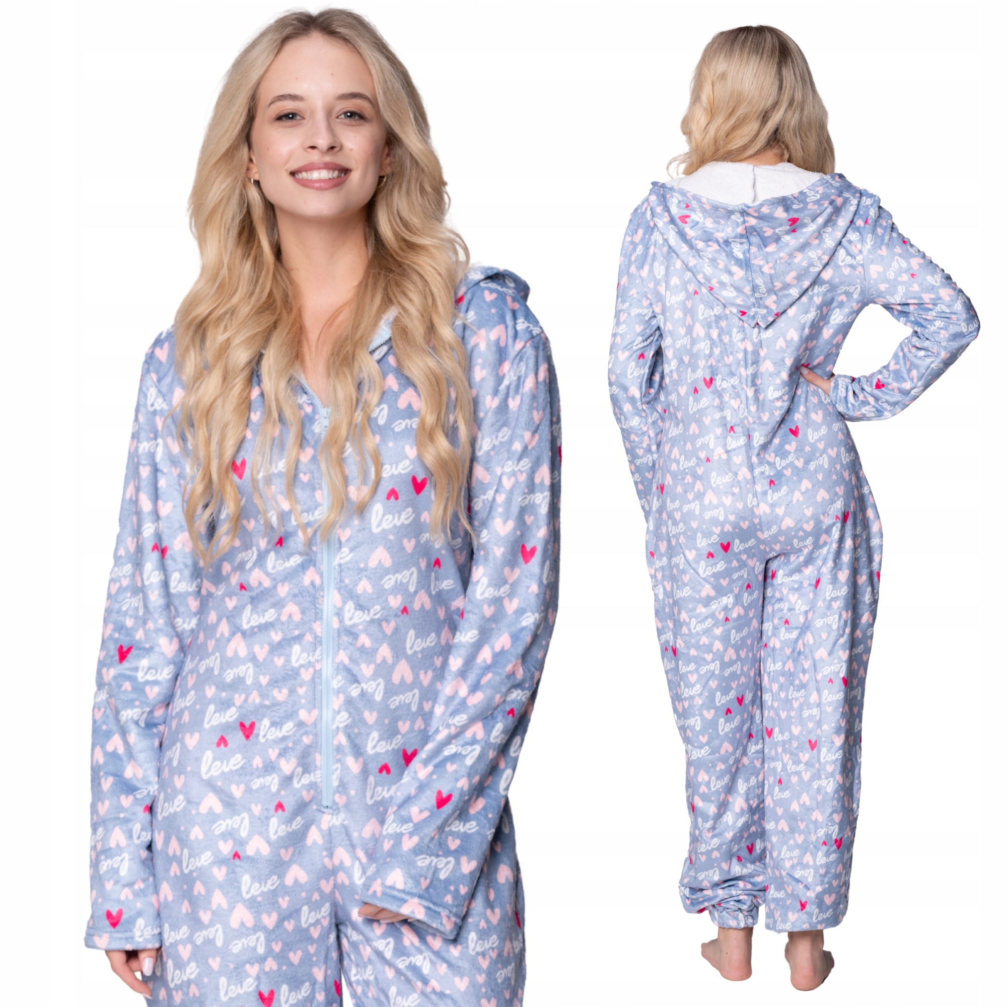 Комбинезон-пижама кигуруми ONESIE для взрослых, серо-синий с сердечками ⭐⭐⭐⭐⭐