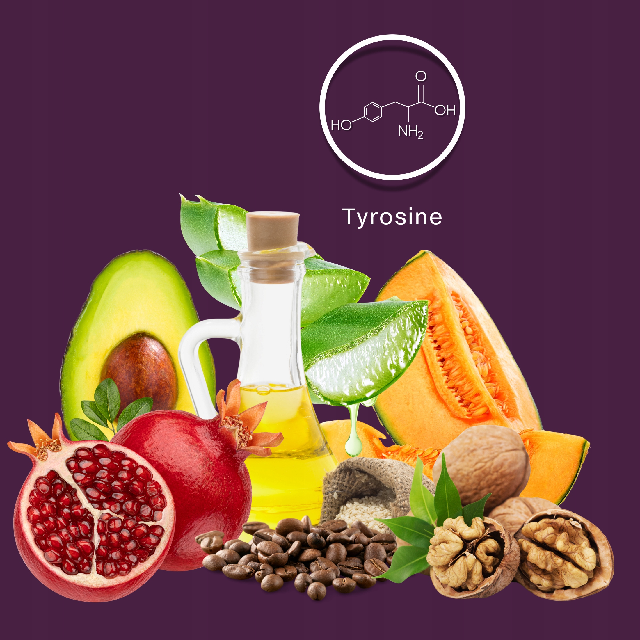 - тирозин -a натуральная аминокислота, которая играет ключевую роль в стимулировании производства меланина, то есть пигмент, ответственный за тонус коричневой кожи. Благодаря этому ваша кожа реагирует быстрее, а загар развивается более интенсивно и естественно.