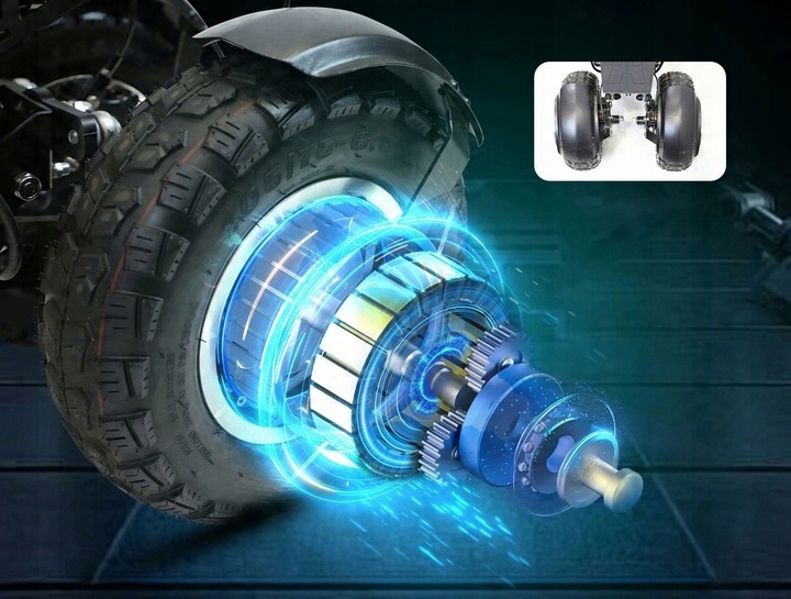 Триплосное электромобиль OOTD T90 с двумя двигателями оснащены двумя большими 13-дюймовыми внедорожными шинами сзади и одной 13-дюймовой передней шиной спереди. Он обеспечивает непревзойденную адгезию, отличный комфорт вождения и идеально подходит для полевого вождения, потому что шины больше, чем те, которые обычно встречаются в электромобилях, благодаря тому, что они могут лучше справляться с препятствиями и неравенствами.
