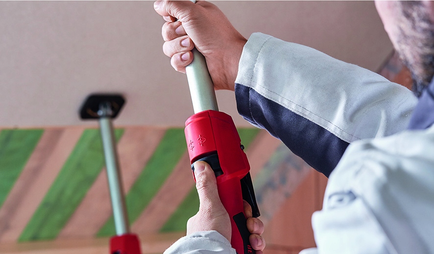Потолочную опору можно точно отрегулировать в соответствии с условиями работы и безопасно снять: