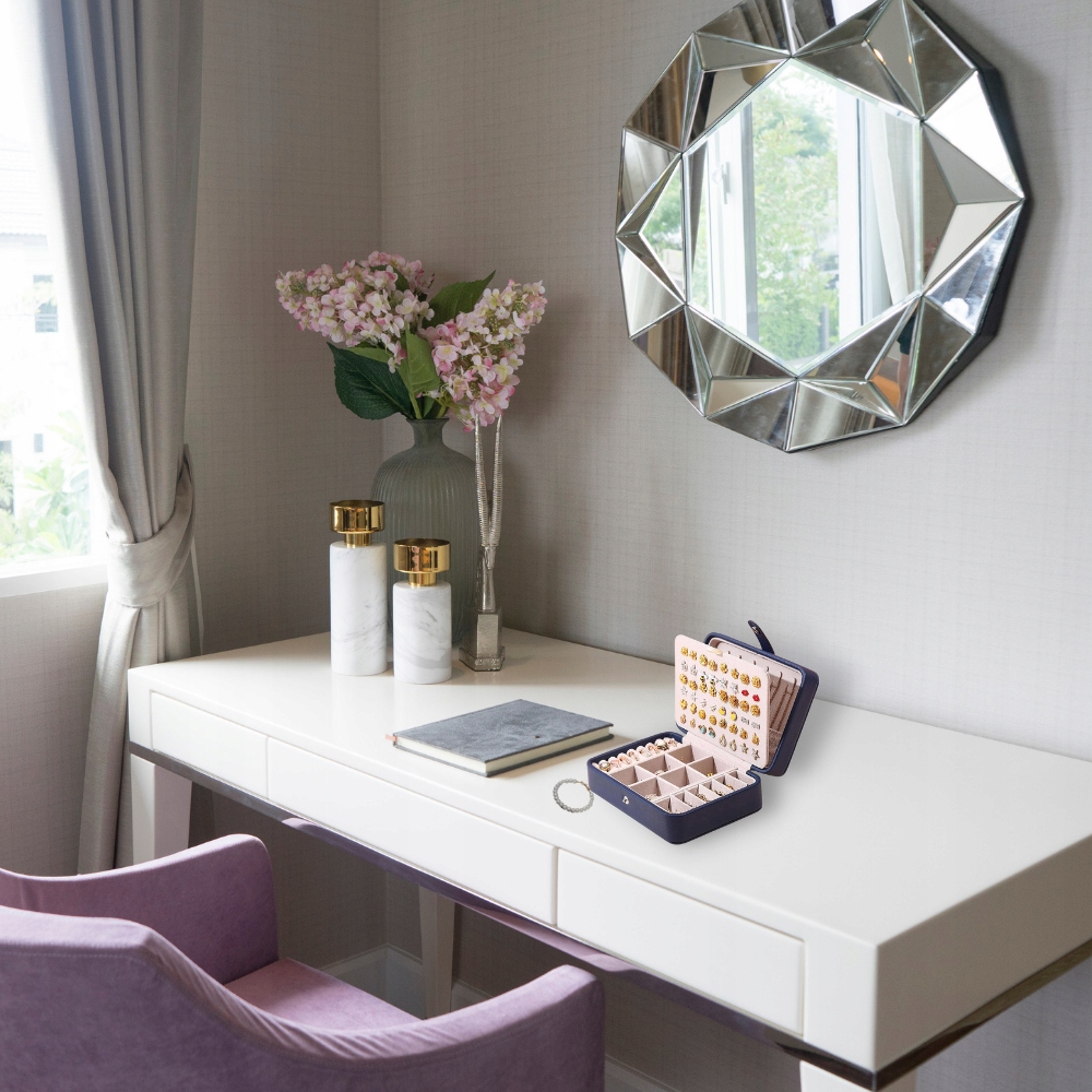 - Практичное расположение ящиков и отделений обеспечивает легкий доступ к отдельным украшениям, а экономичная форма и темно-синий цвет подходят для современных интерьеров и интерьеров в стиле ретро. li>