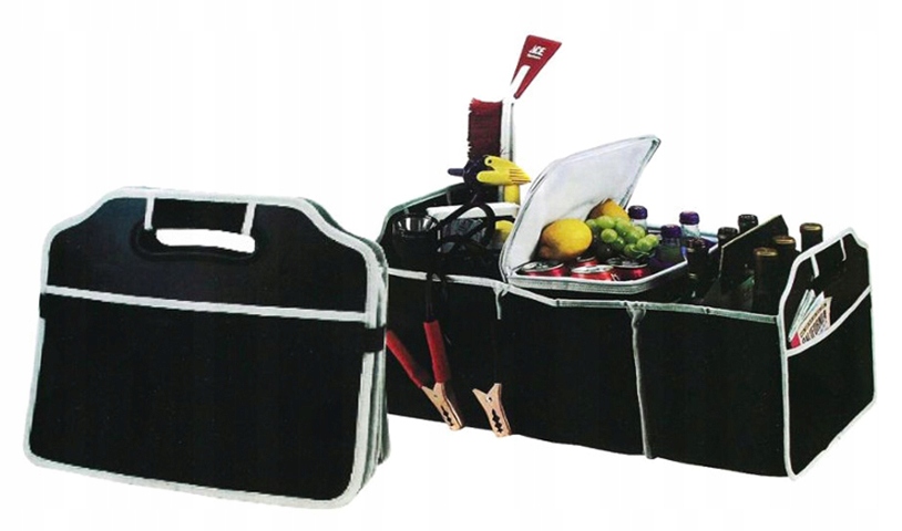 Сумка-органайзер помещается в багажник автомобиля. В машину поместятся полезные вещи, которые мы часто возим в машине. В сложенном виде он не займет много места. Имеет практичный черный цвет и удобные прочные ручки. Органайзер всегда можно иметь под рукой и разворачивать его только при необходимости.
