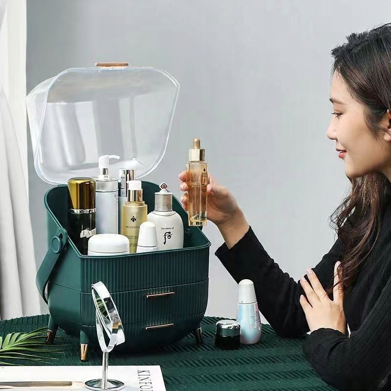 Уникальный набор из двух органайзеров для косметики, украшений, кистей и многого другого. Изделие открывается и имеет выдвижные ящики. Больше никакой возни с косметикой.