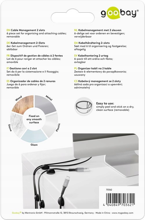 - 6x 2 кабельные отверстия Ø макс. Особенно полезно для кабелей передачи данных в мобильных телефонах