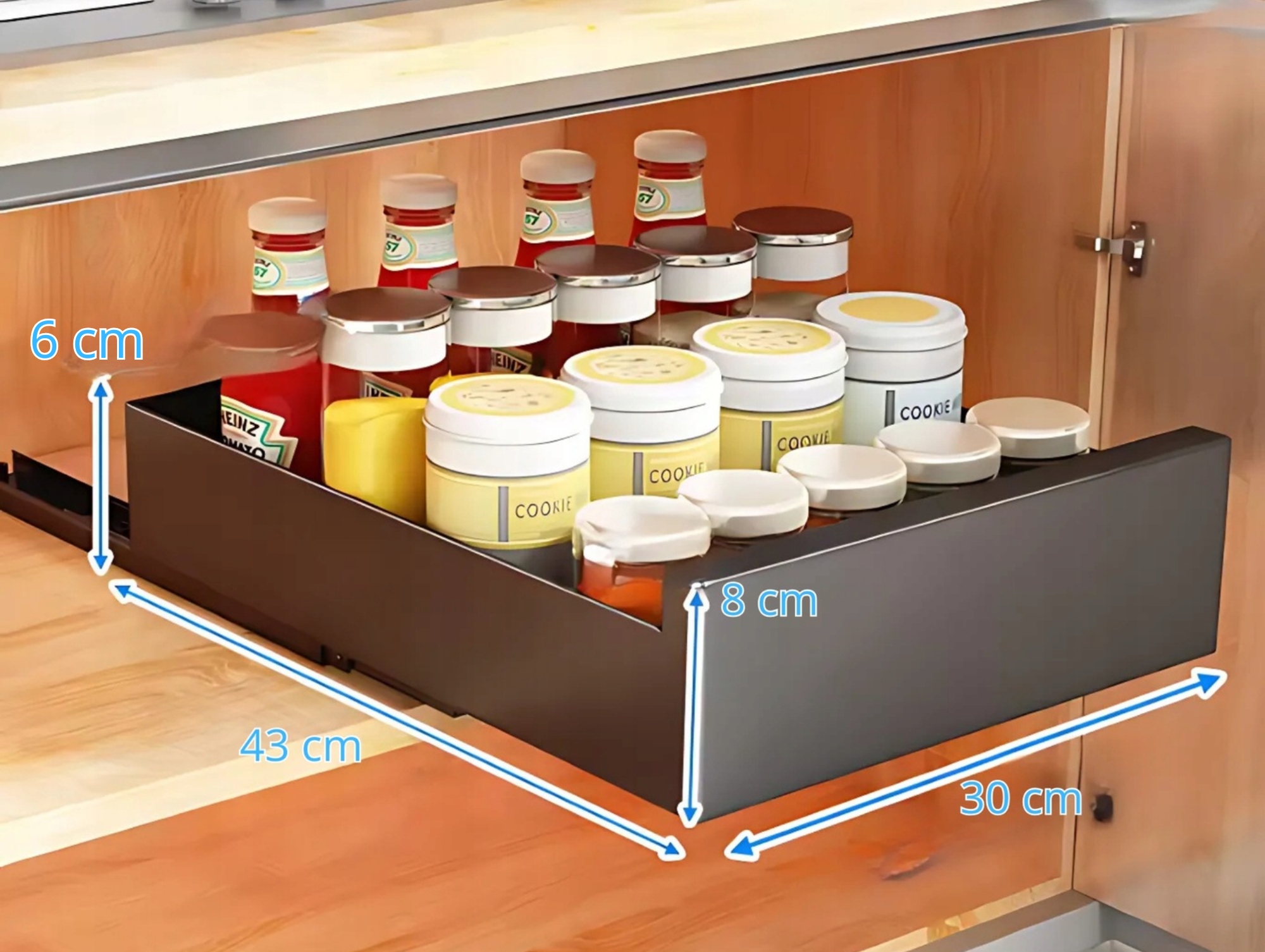 ☑ Выдвижной дизайн b> означает, что все специи, ложки, новички и другие небольшие аксессуары всегда находятся под рукой - без необходимости поиска глубоких ящиков. Жидкие руководства позволяют полностью расширить организатор, и благодаря оптимальной высоте боковых банок, столовых приборов или сыра остается стабильной даже при полной нагрузке. Это решение, которое облегчает приготовление и организует кухню!